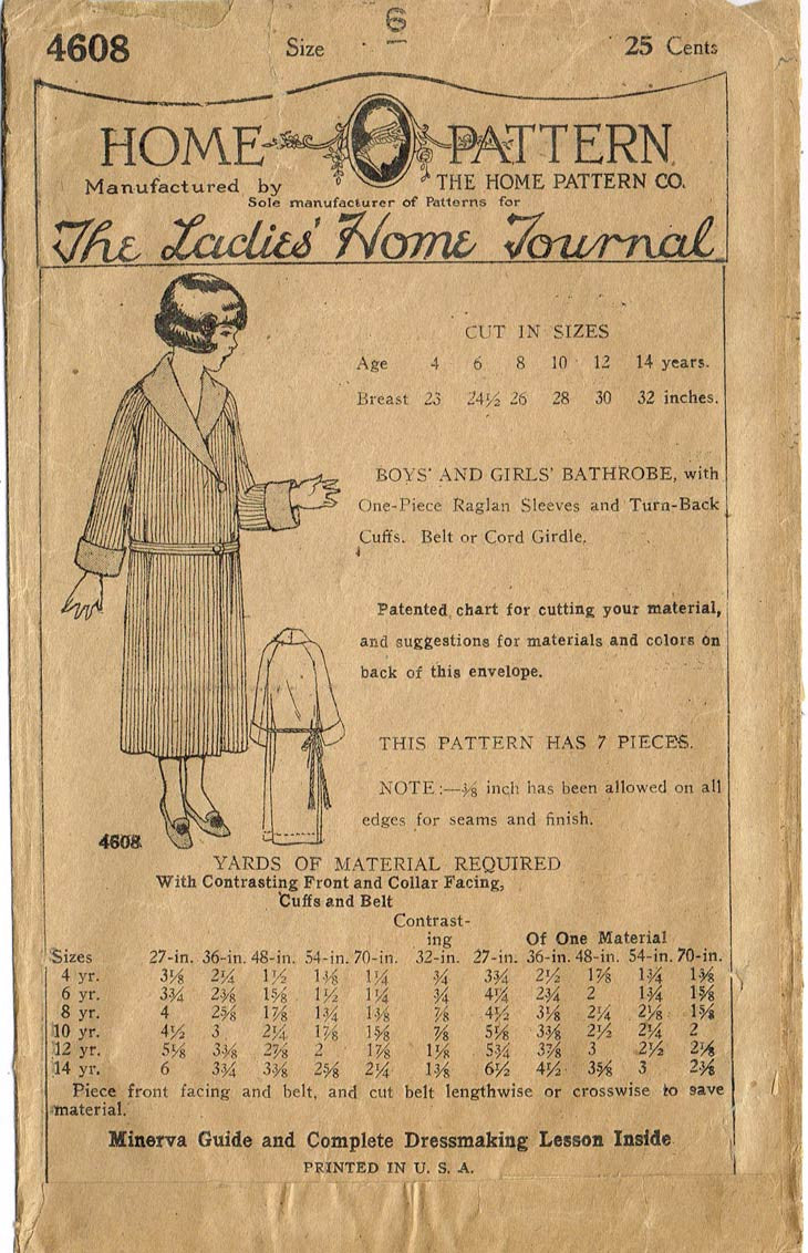 1920s Antique Ladies Home Journal Sewing Pattern 4608 Toddler Girls Robe Size 6
