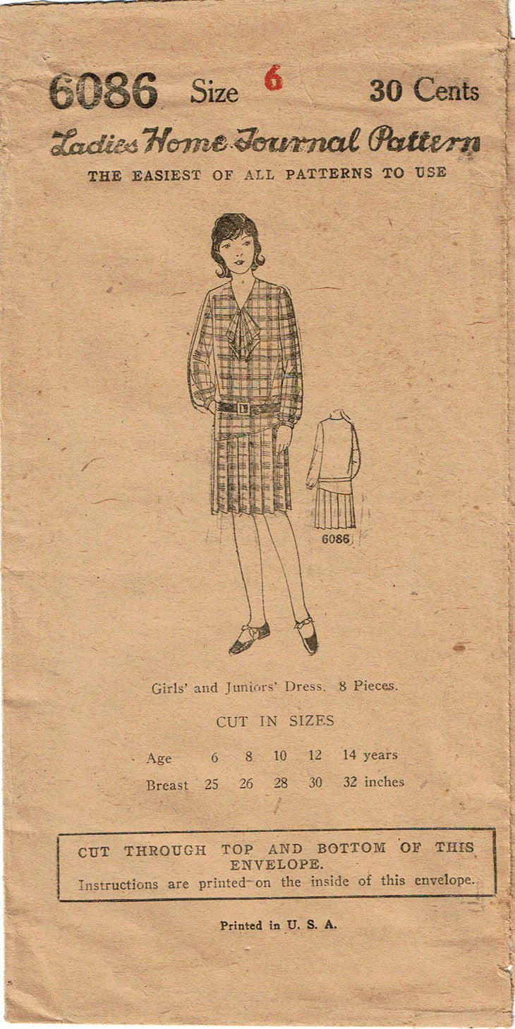 1920s Ladies Home Journal Sewing Pattern 6086 FF Toddler Girls Flapper Dress Sz6