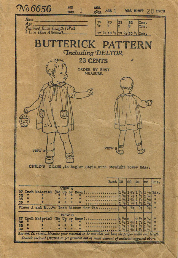 1920s Rare Vintage Butterick Sewing Pattern 6656 Baby Girls Dress Size 1 20B