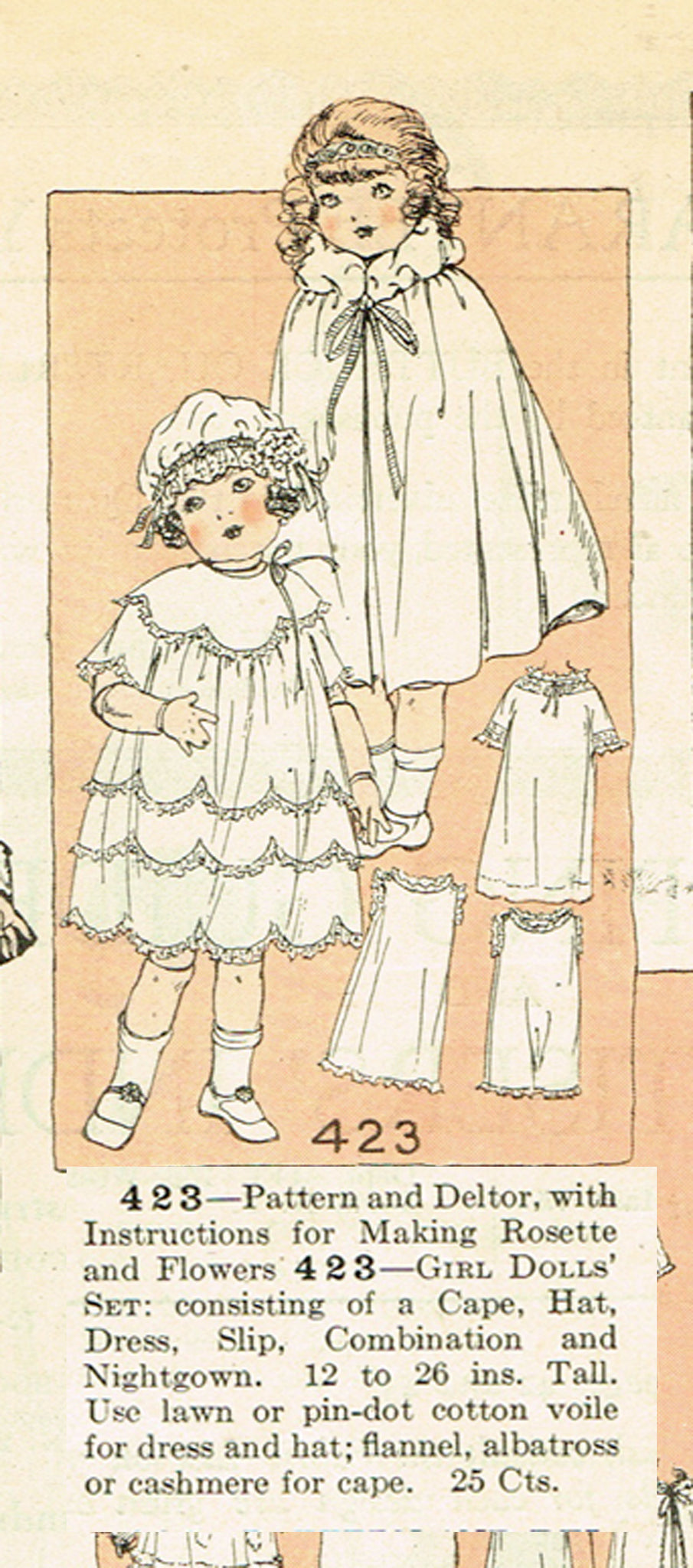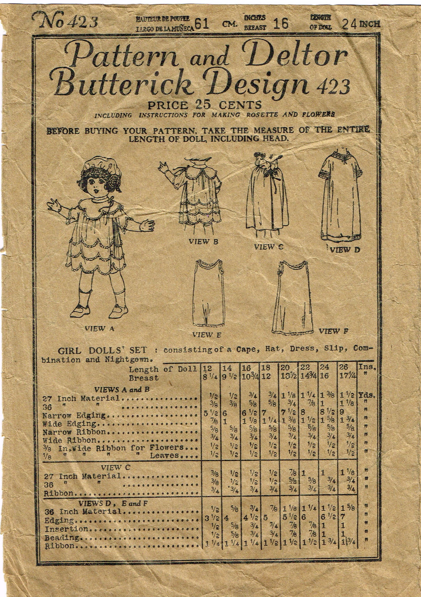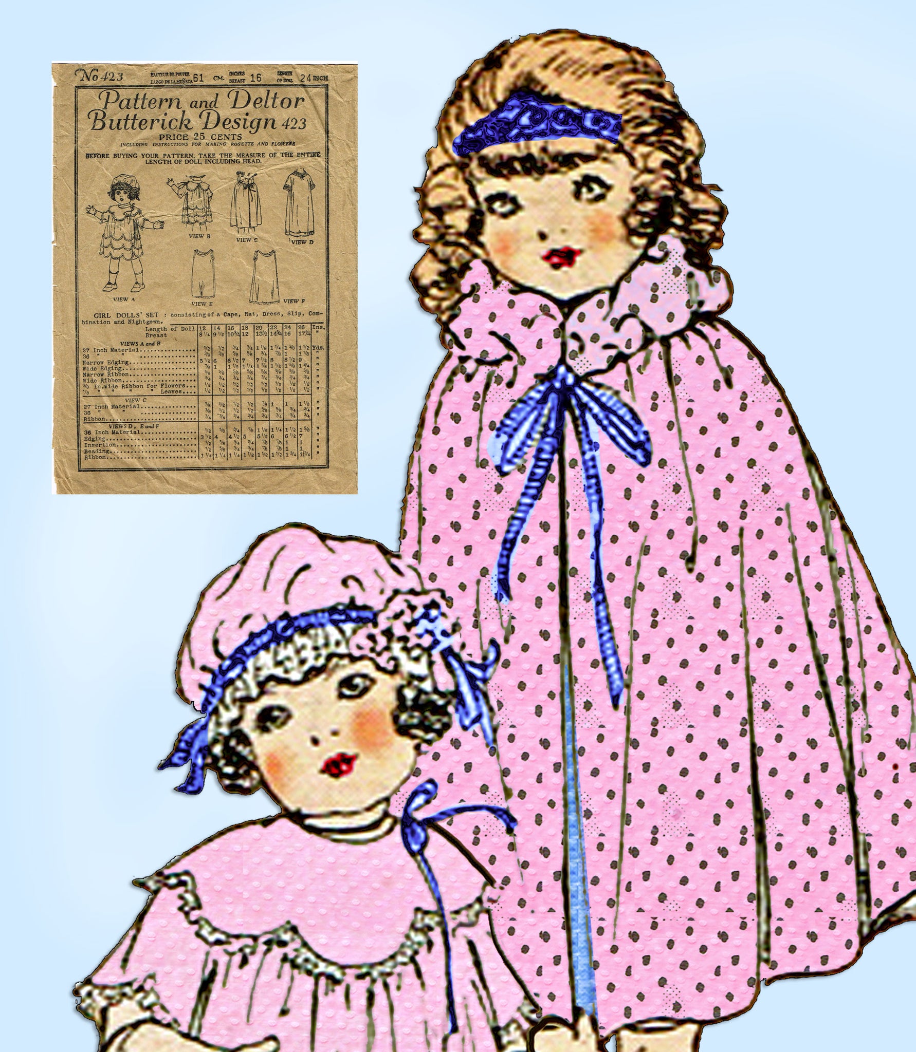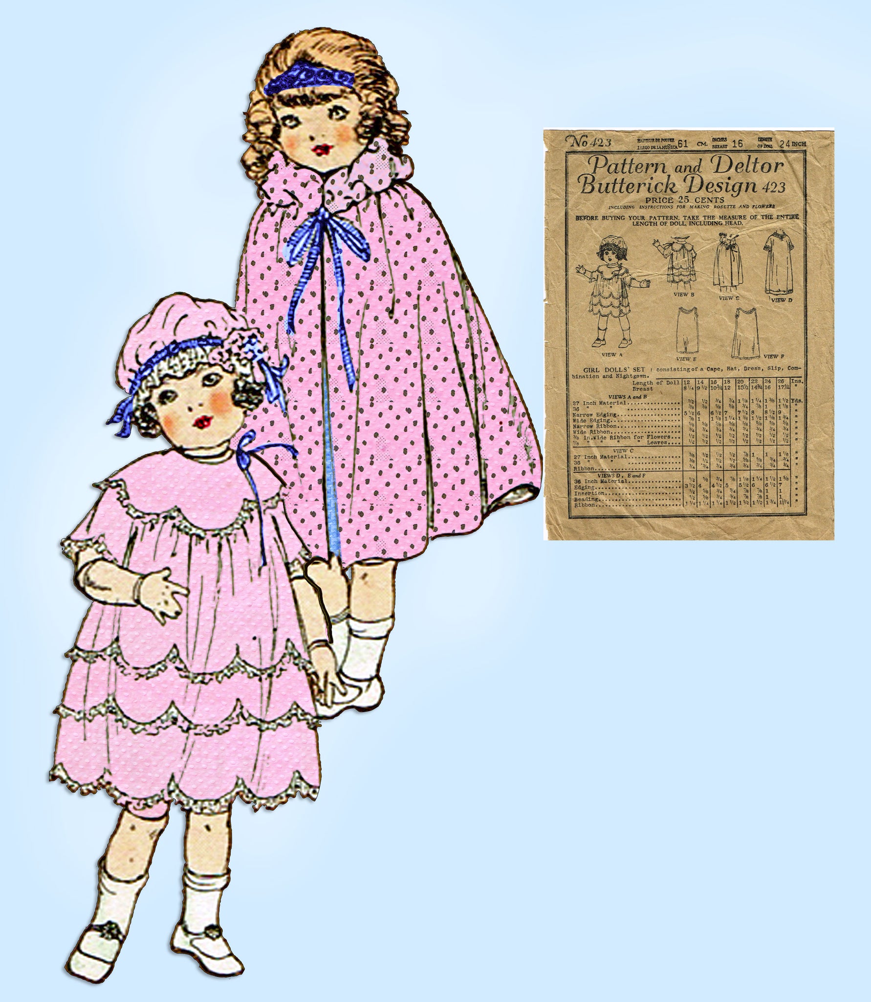 1920s Vintage Butterick Sewing Pattern 423 24inch Little Girl Doll Clothes Set
