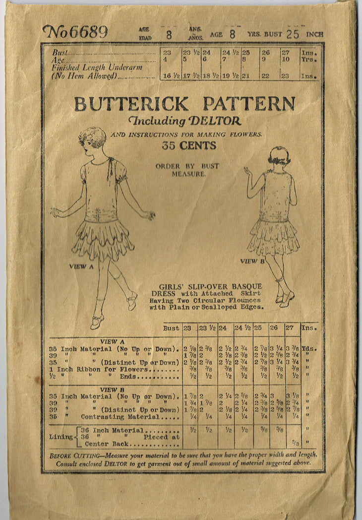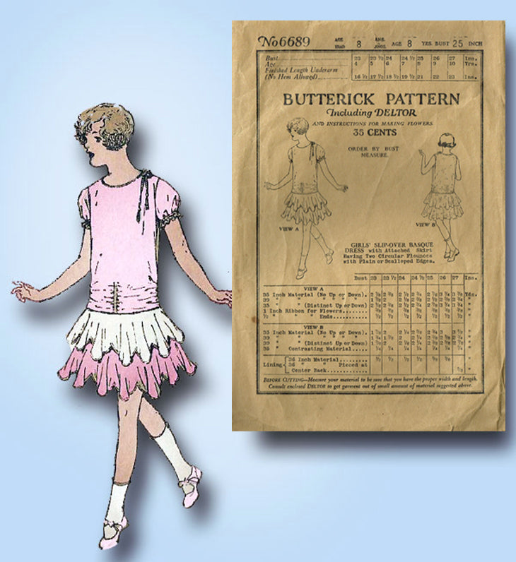 1920s Vintage Butterick Sewing Pattern 6689 Little Girls Flapper Party Dress Sz8