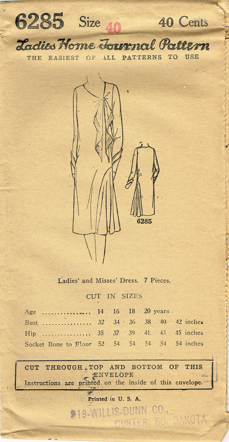 1920s Vintage Ladies Home Journal Pattern 6285 Uncut Ladies Flapper Dress Sz 40B