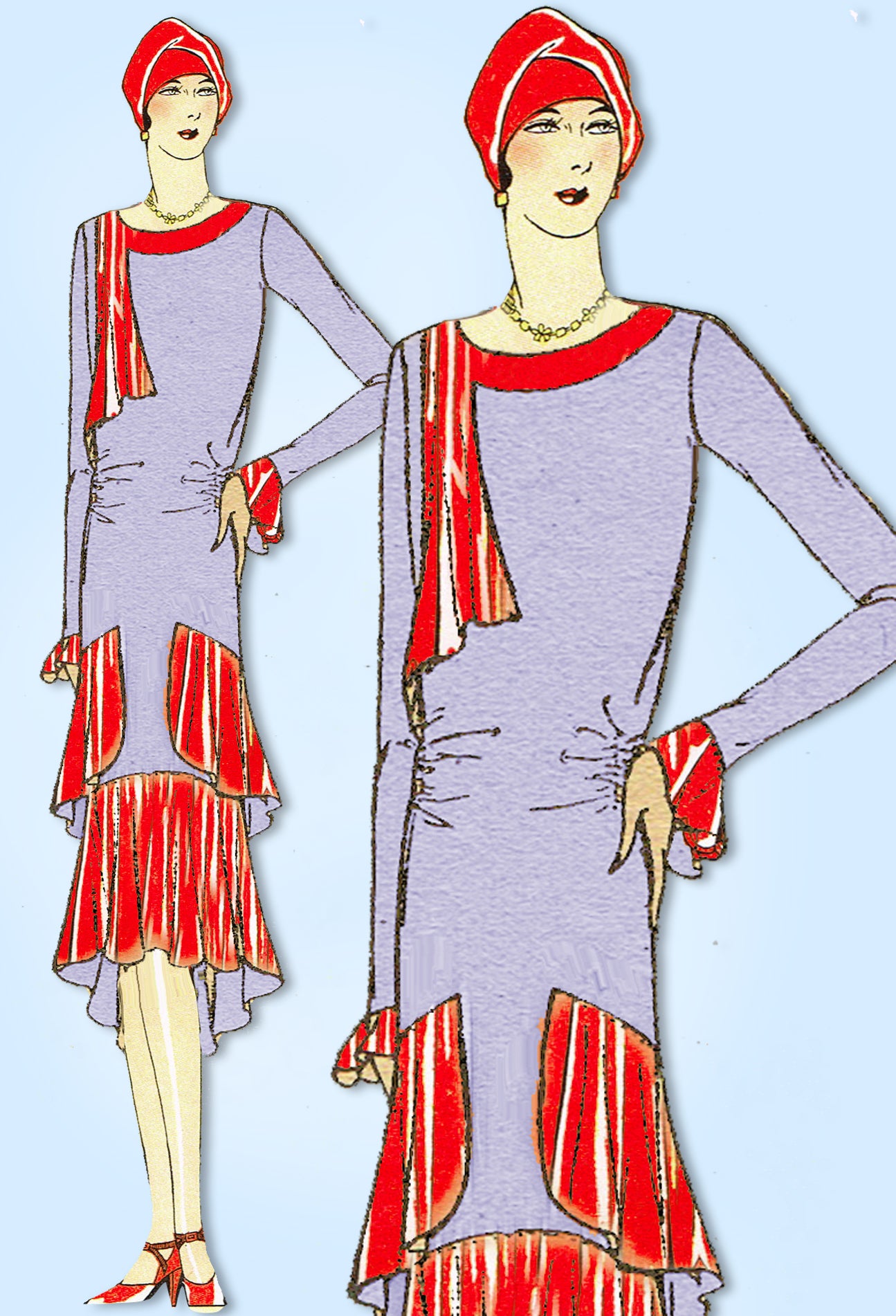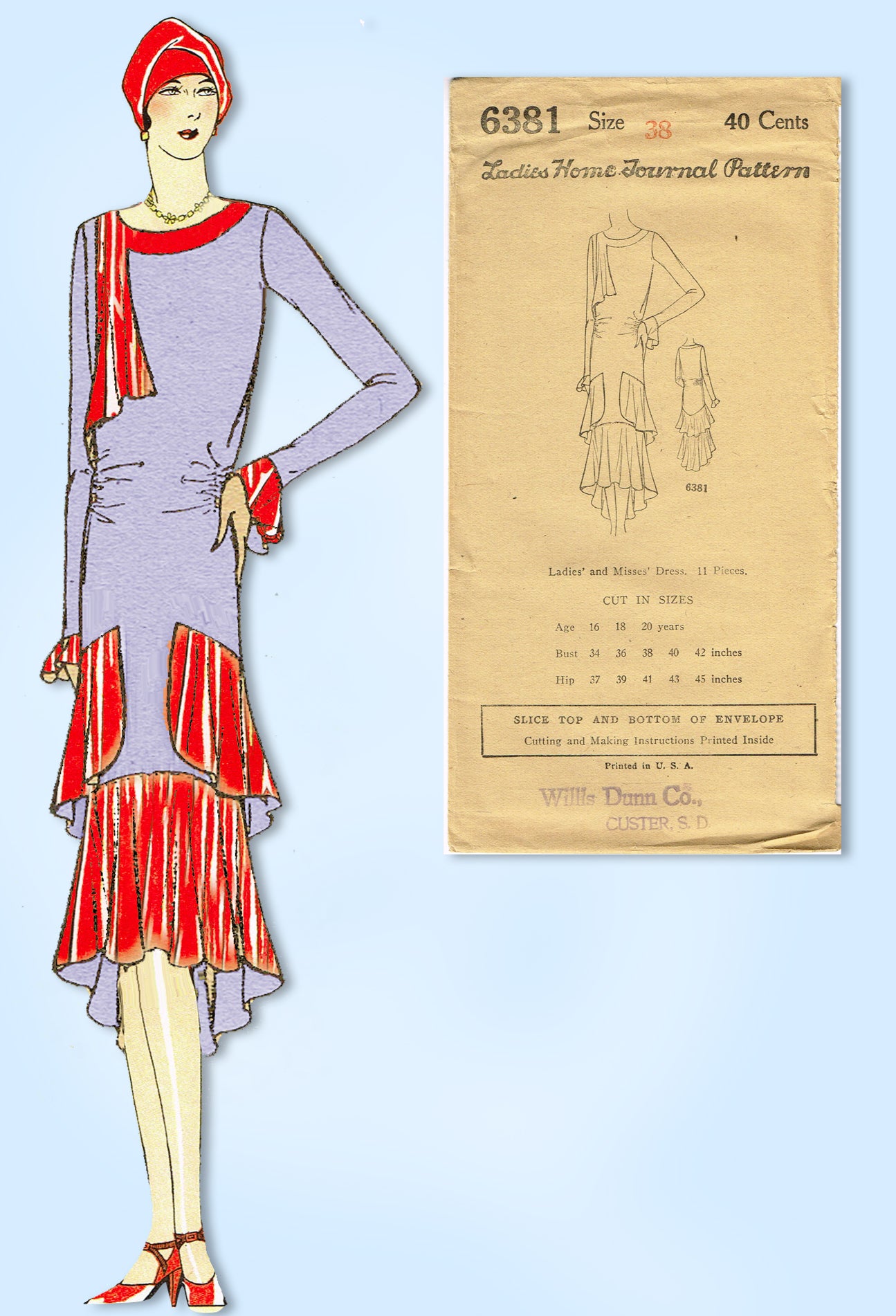1920s Vintage Ladies Home Journal Pattern 6381 Uncut Flapper Flounce Dress 38B