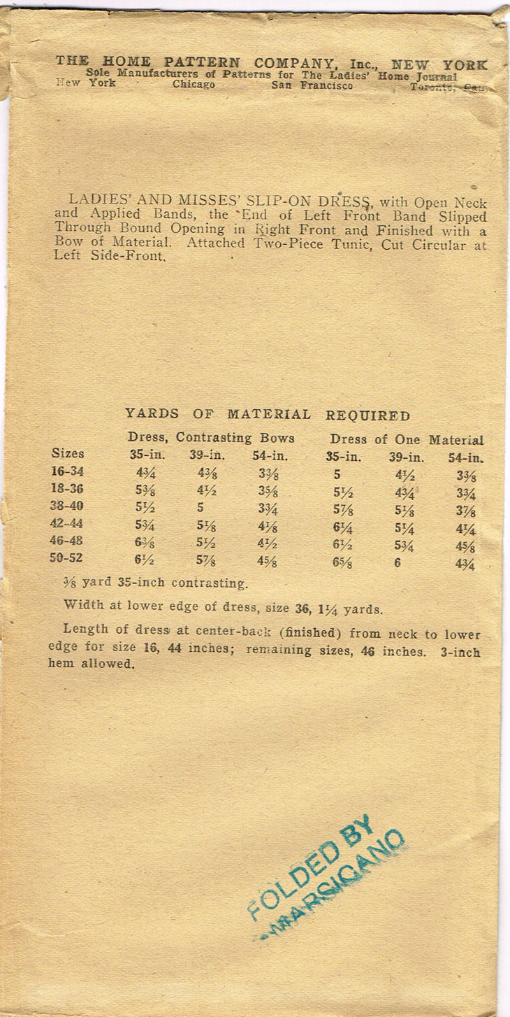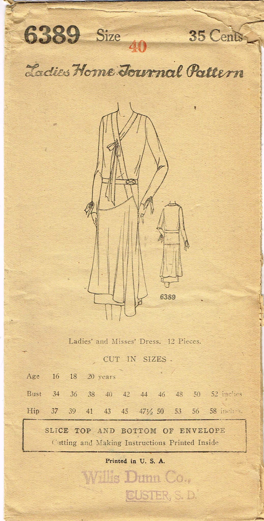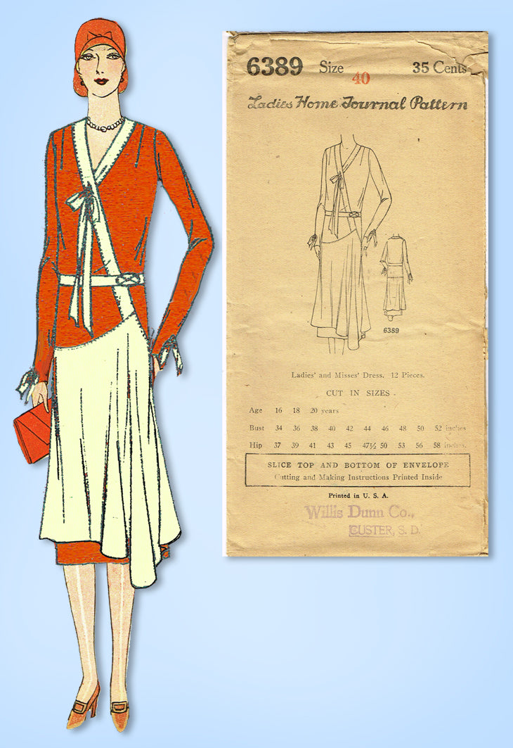 1920s Vintage Ladies Home Journal Pattern 6389 Uncut Misses Flapper Dress Sz 40B