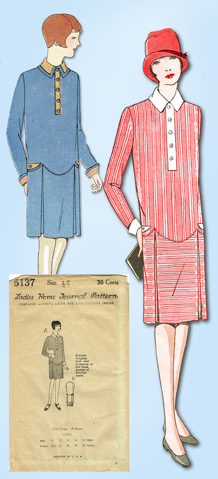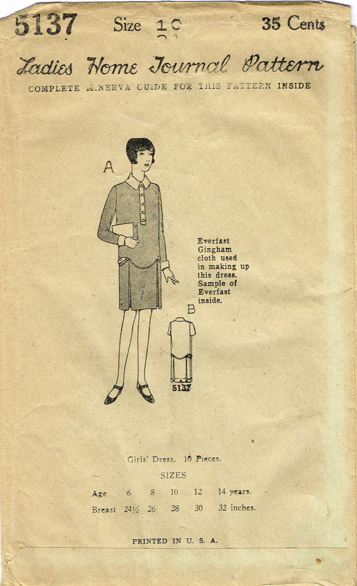 1920s Vintage Ladies Home Journal Sewing Pattern 5137 FF Girls Flapper Dress 10