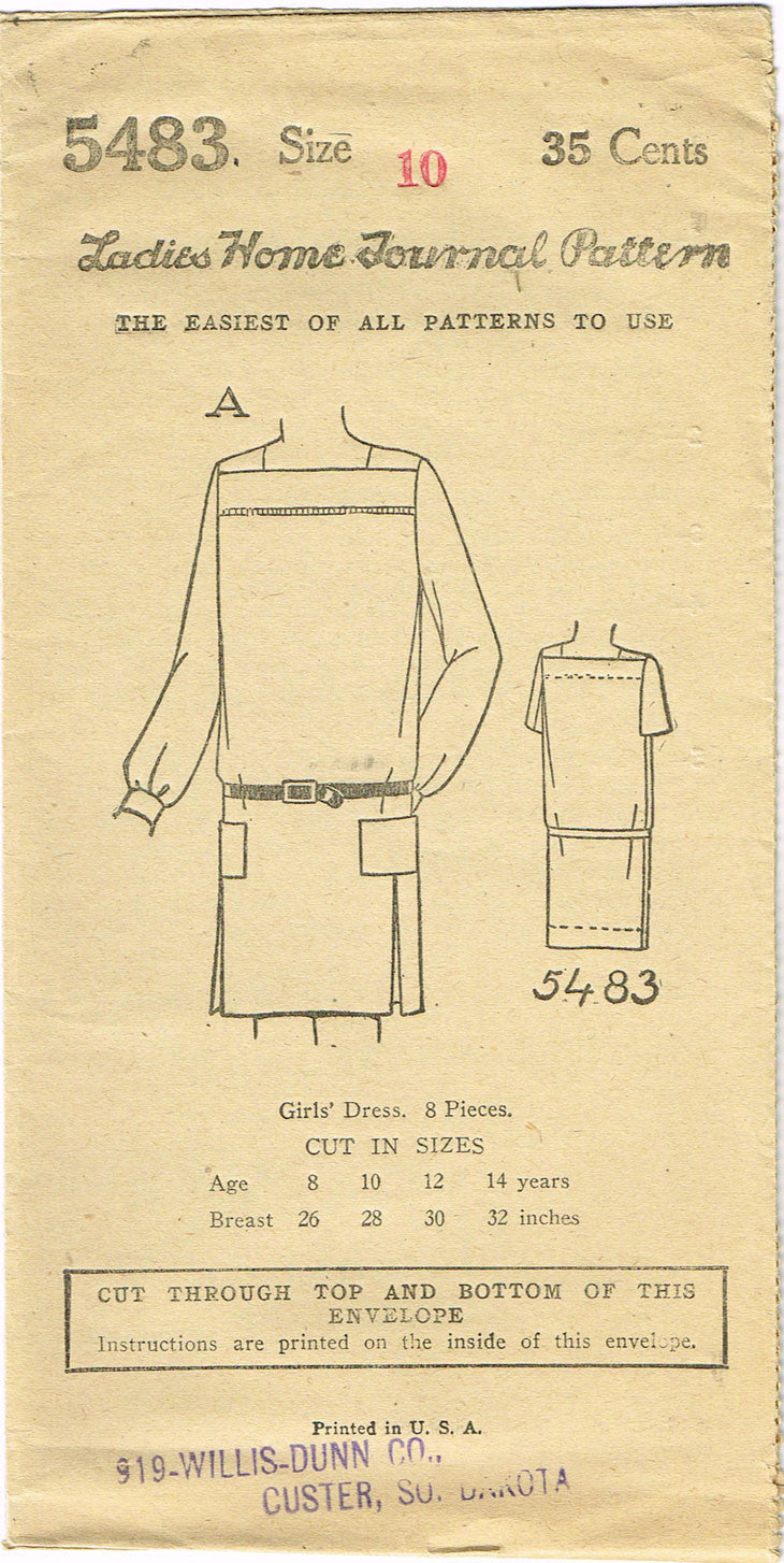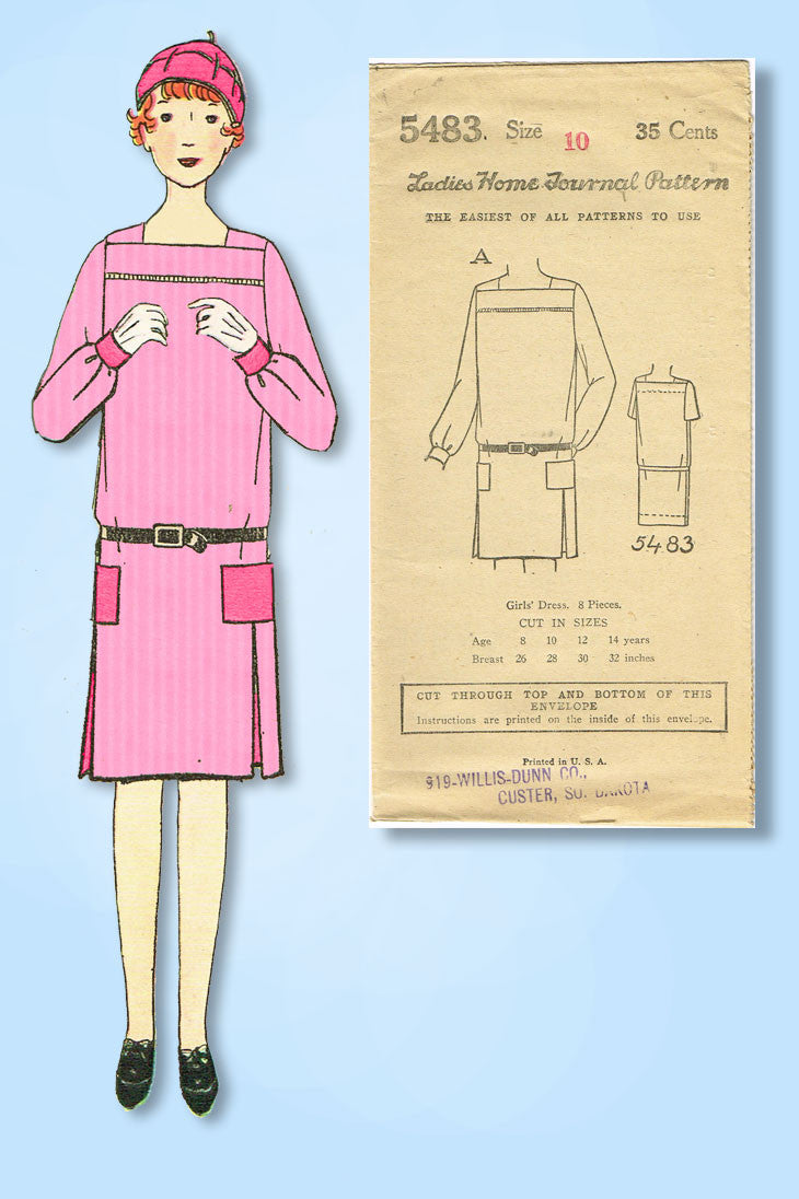 1920s Vintage Ladies Home Journal Sewing Pattern 5483 FF Girls Flapper Dress 10