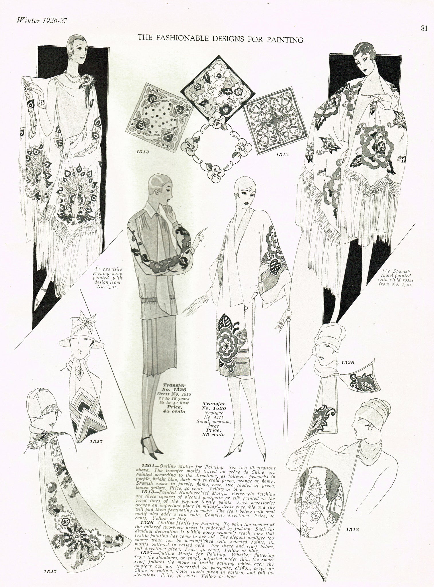 1920s Vintage McCall Embroidery Transfer 1501 Uncut Flapper Wrap Motifs RARE