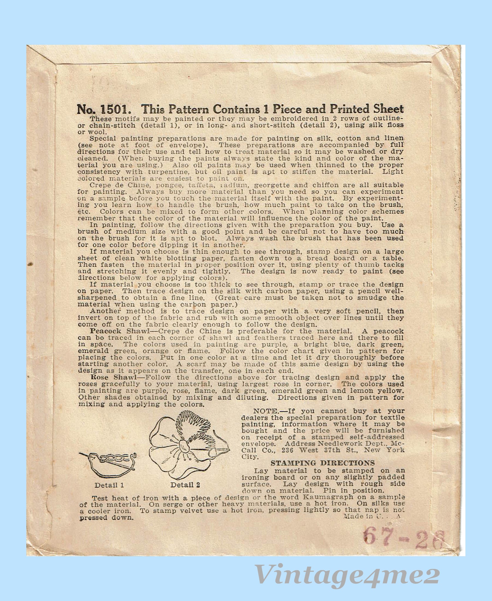 1920s McCall Embroidery Transfer Pattern 1501