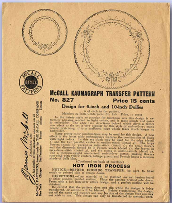 1920s Vintage McCall Kauamagraph Embroidery Transfer 827 Uncut 6 & 10" Doilies