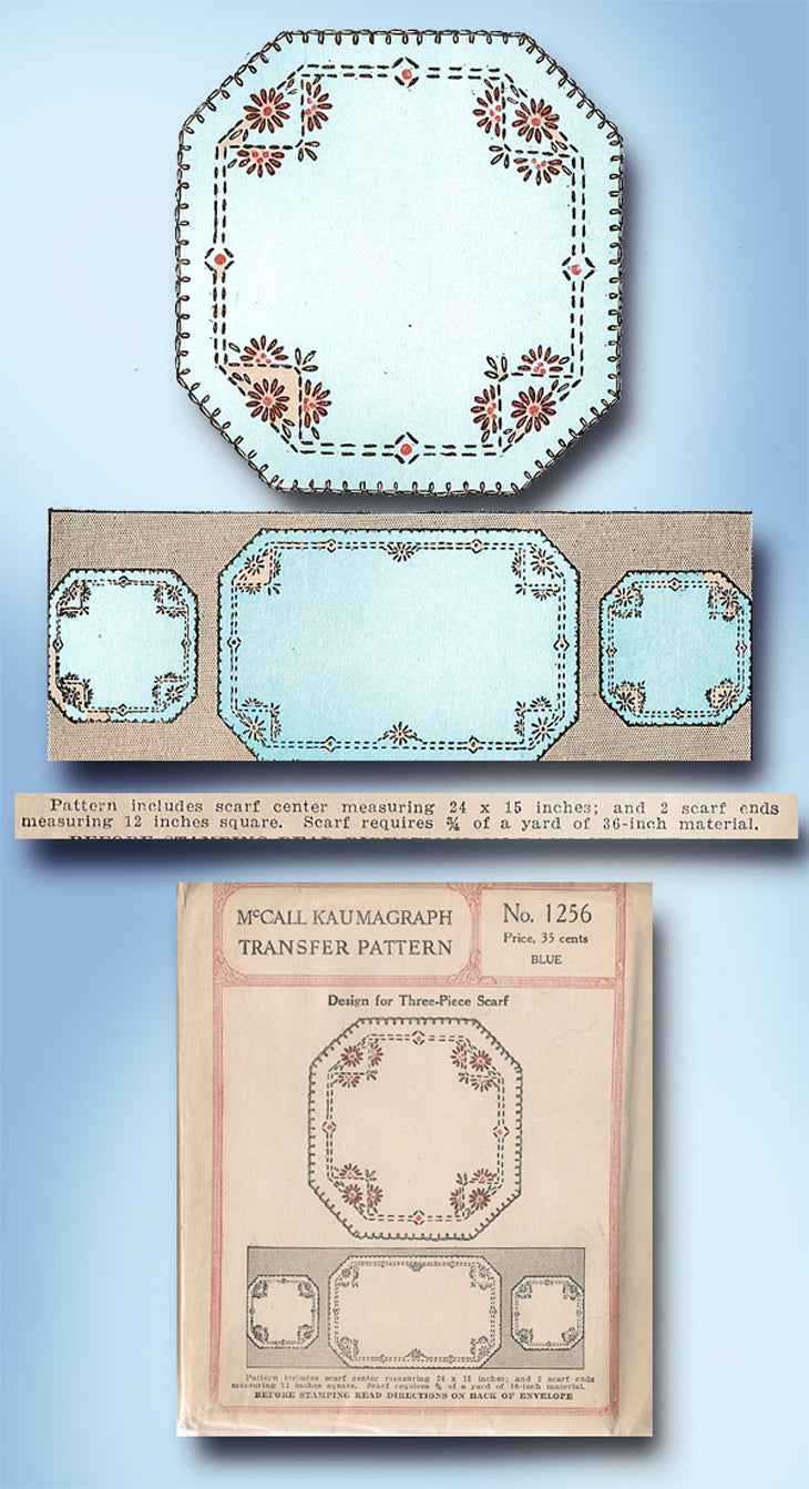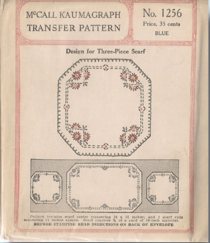 1920s Vintage McCall Kaumagraph Embroidery Transfer 1256 Uncut 3 Pc Scarf Set