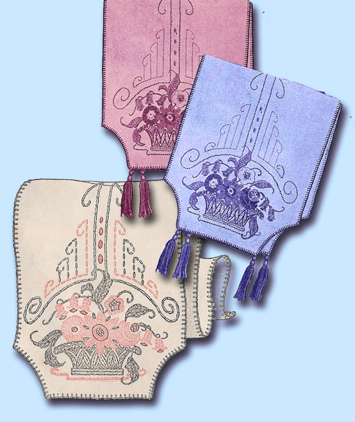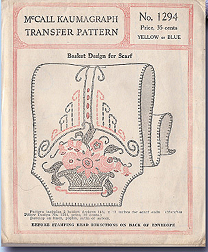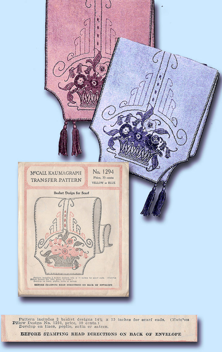 1920s Vintage McCall Kaumagraph Embroidery Transfer 1294 Uncut Basket Scarf Ends