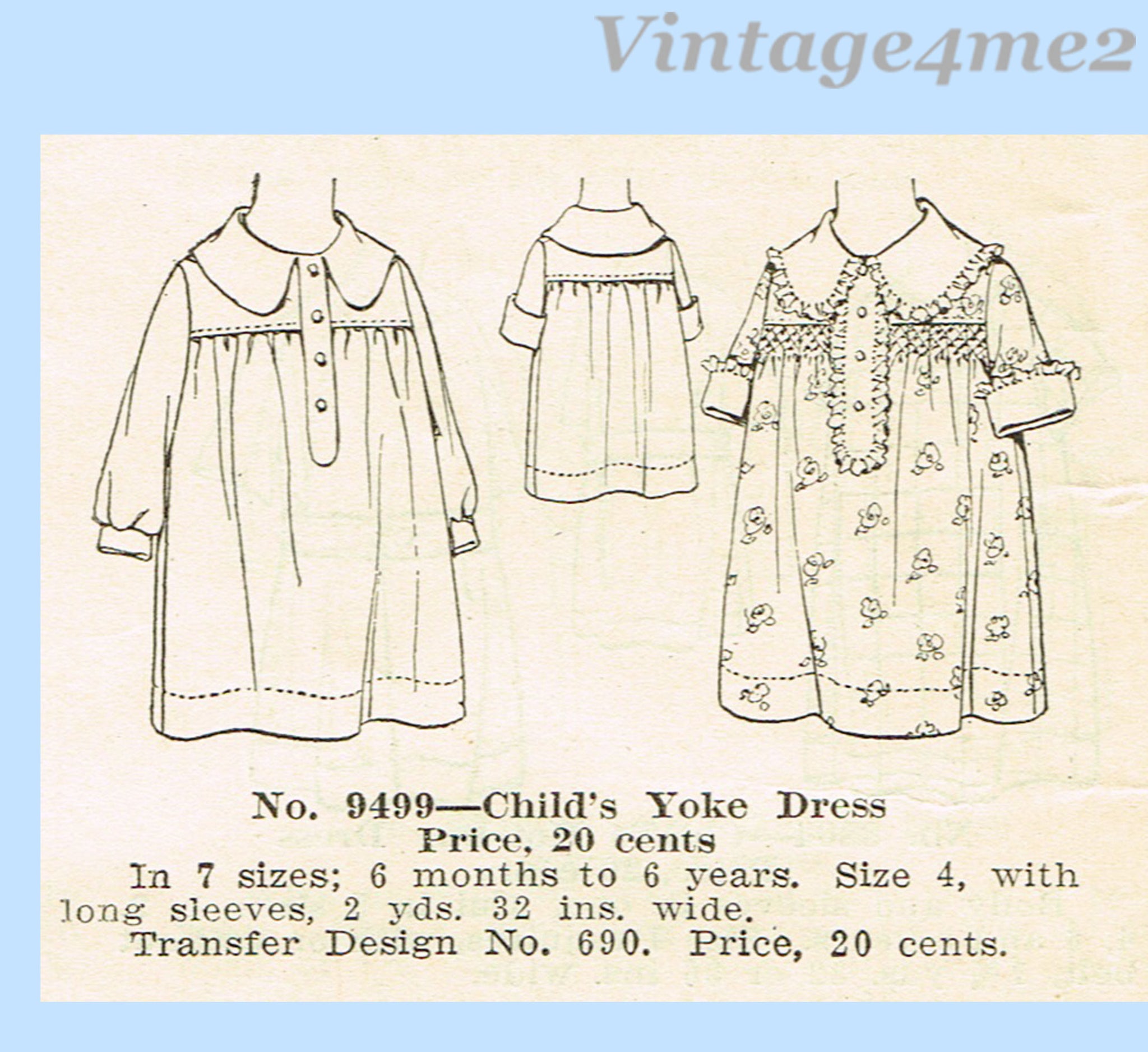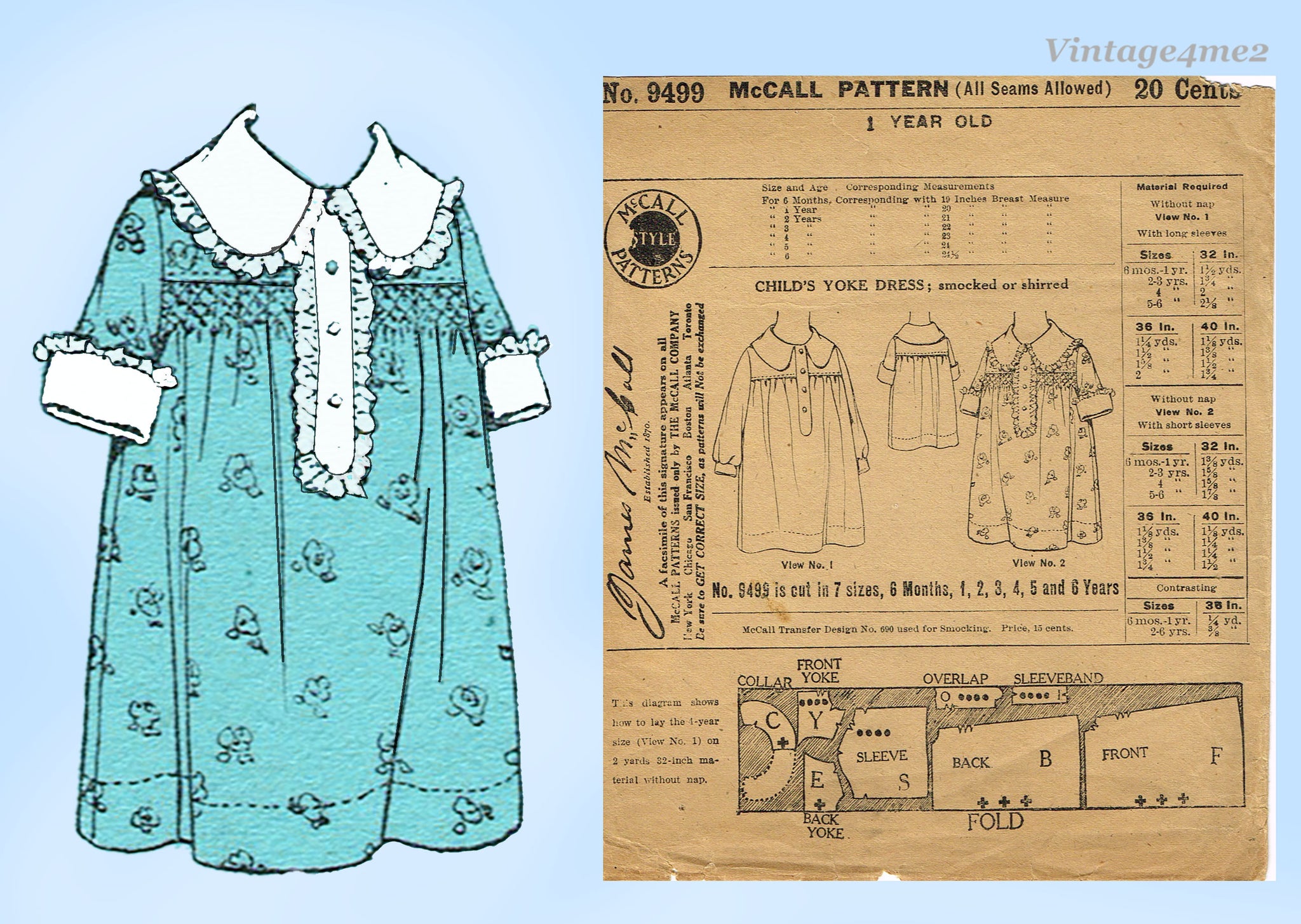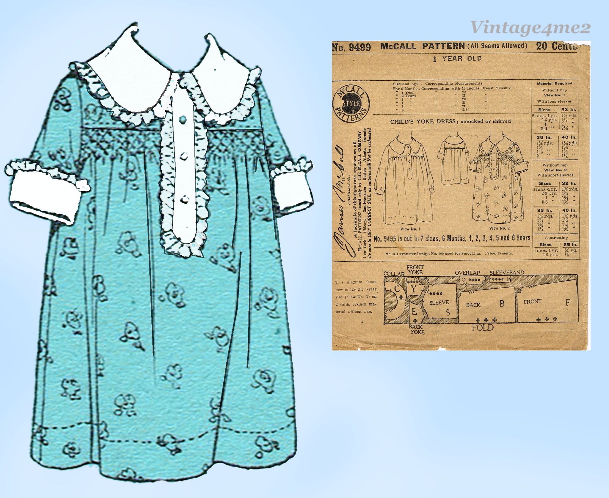 1920s Vintage McCall Pattern 9499 Sweet Uncut Baby Girls Shirred Dress Size 1