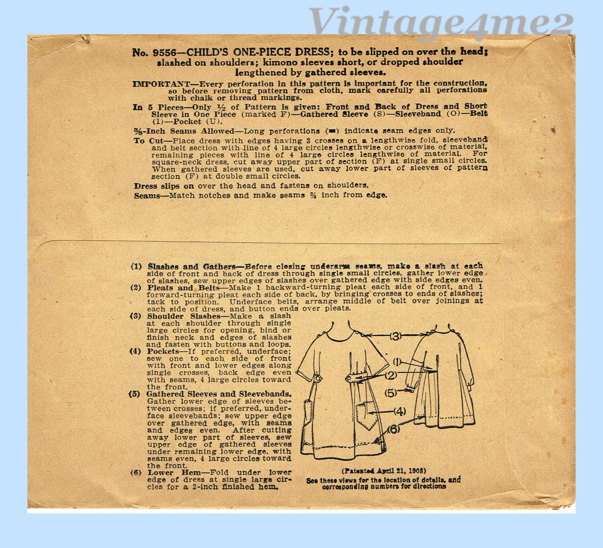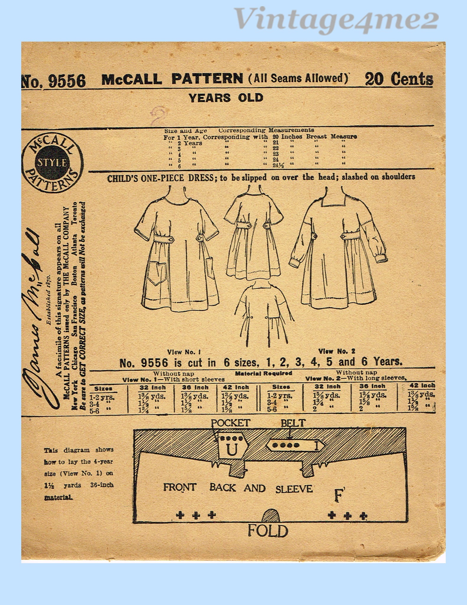 1920s Rare Vintage McCall Pattern 9556 Charming Uncut Baby Girls Dress Size 2
