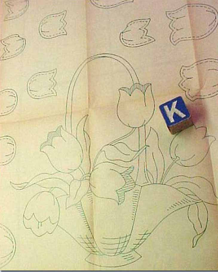 1920s VTG Betty Burton Embroidery Transfer "E" Uncut Applique Tulip Bedspread