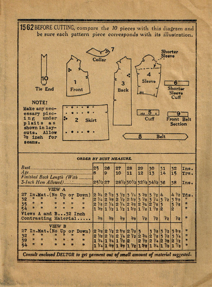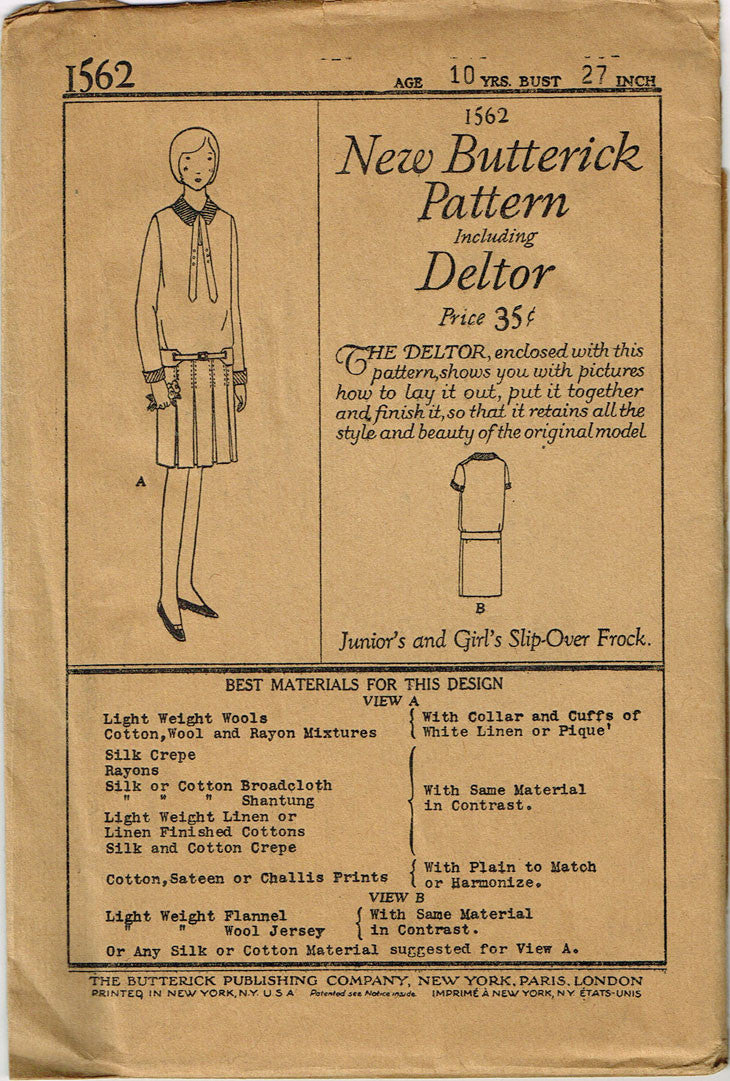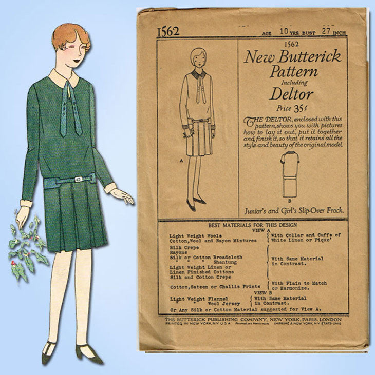 1920s VTG Butterick Sewing Pattern 1562 Uncut Little Girls Flapper Dress Sz 10