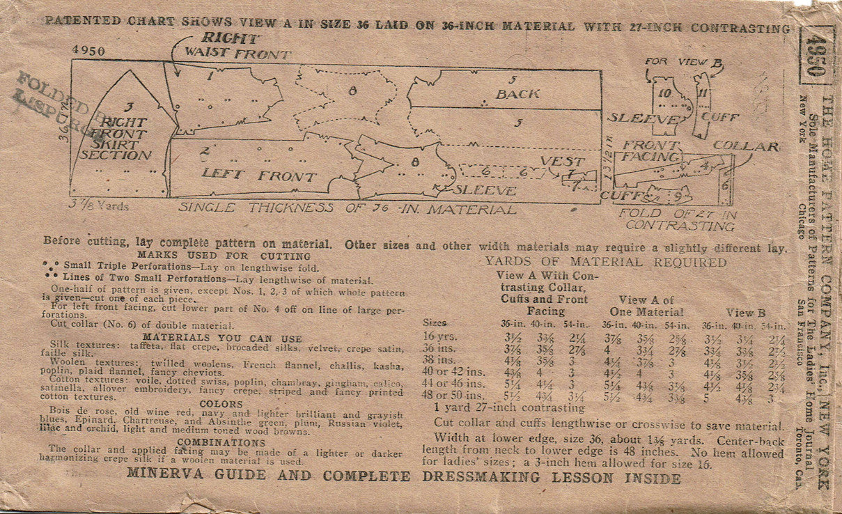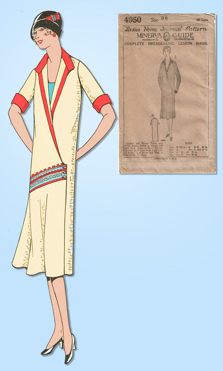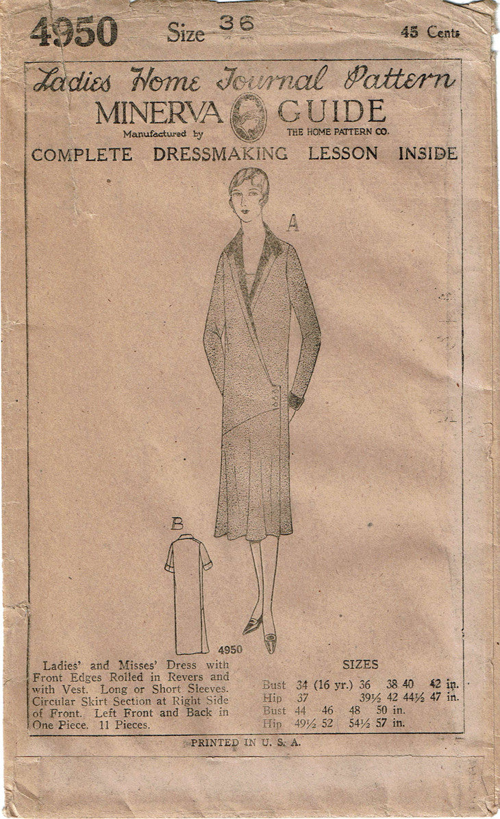 1920s VTG Ladies Home Journal Sewing Pattern 4950 Uncut Misses Flapper Dress 36B
