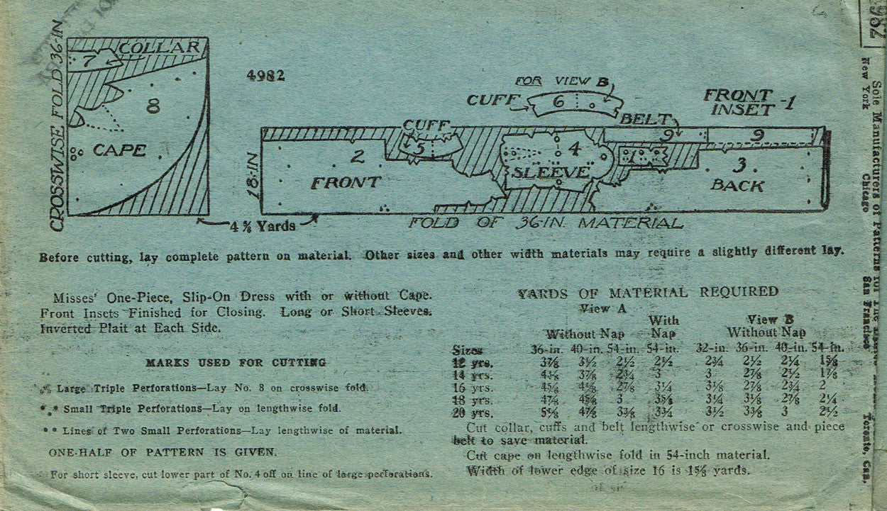 1920s VTG Ladies Home Journal Sewing Pattern 4982 Uncut Capped Flapper Dress 34B