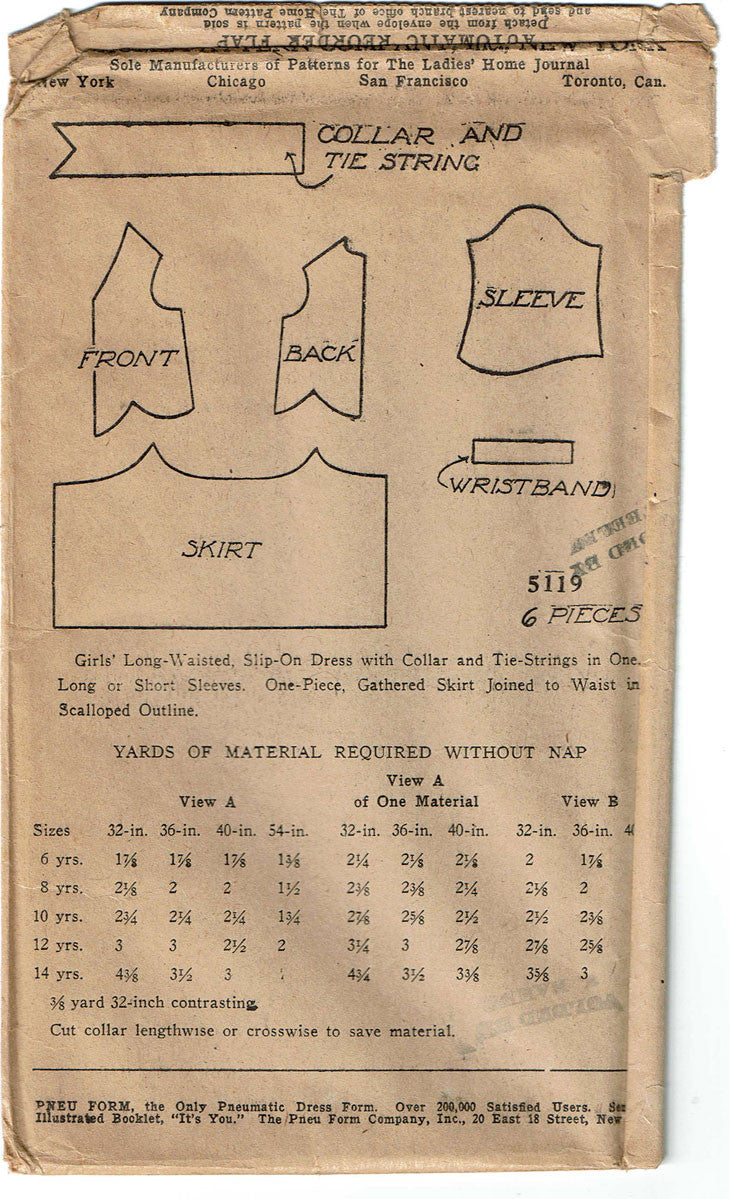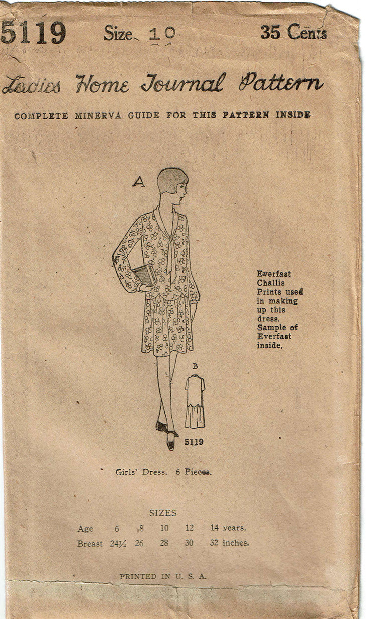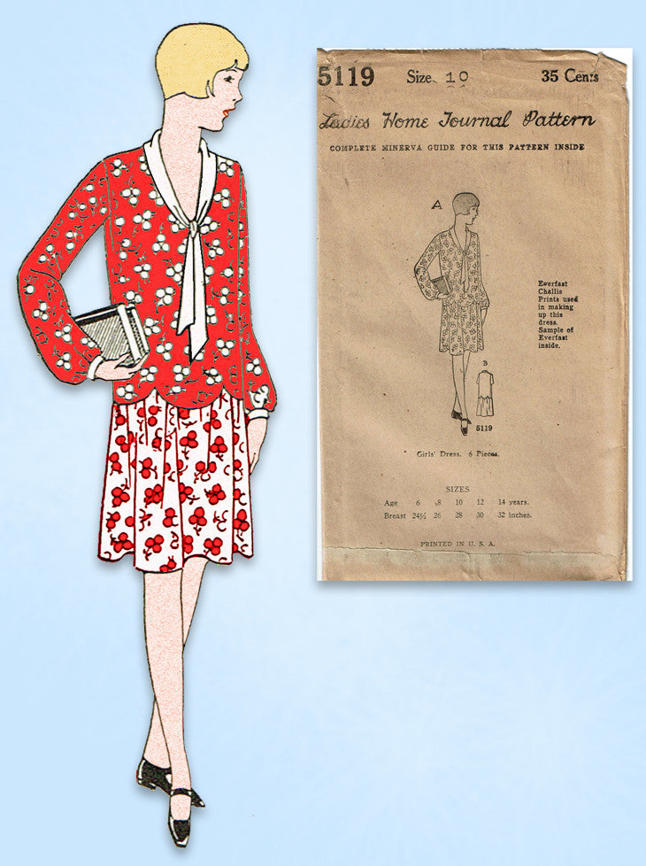 1920s VTG Ladies Home Journal Sewing Pattern 5119 Uncut Girls Flapper Dress Sz10