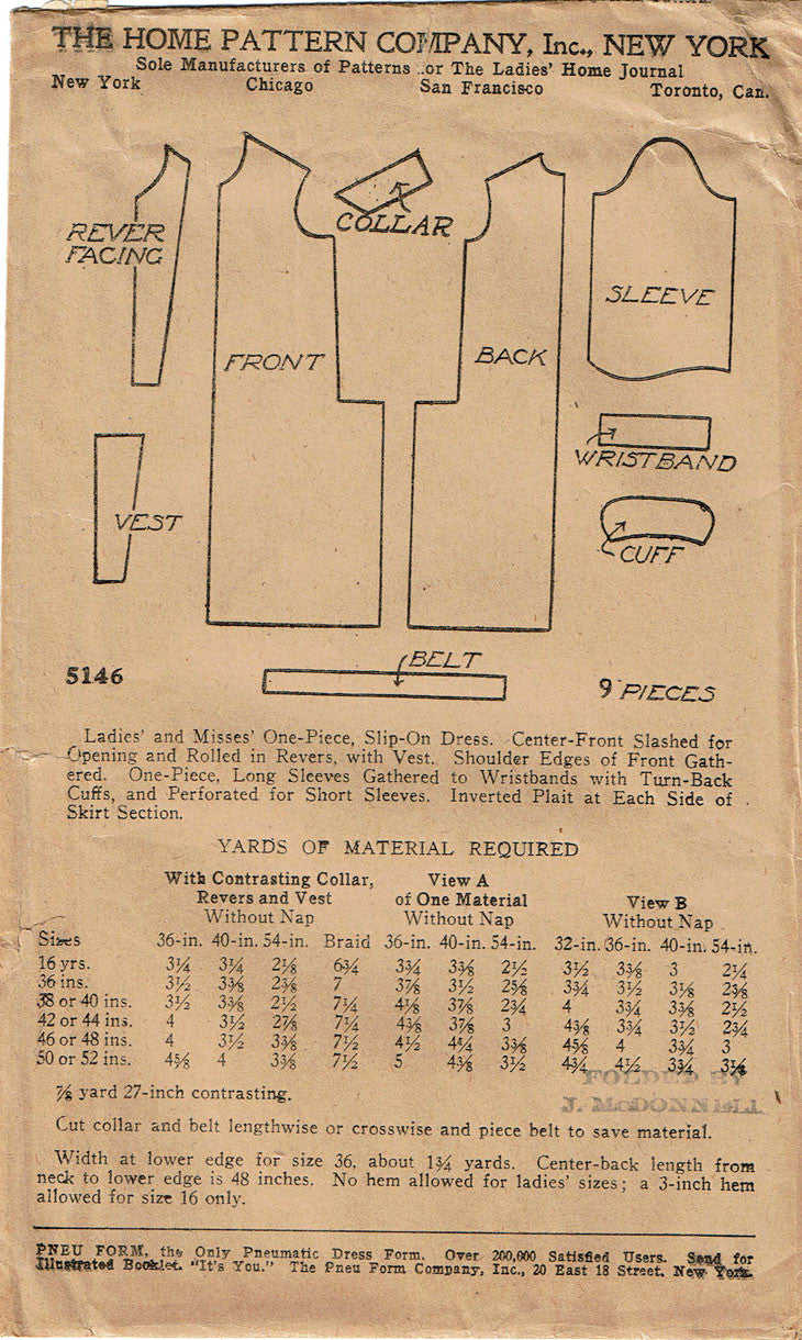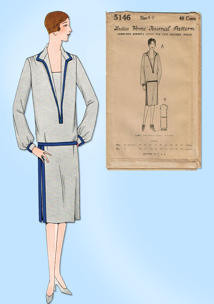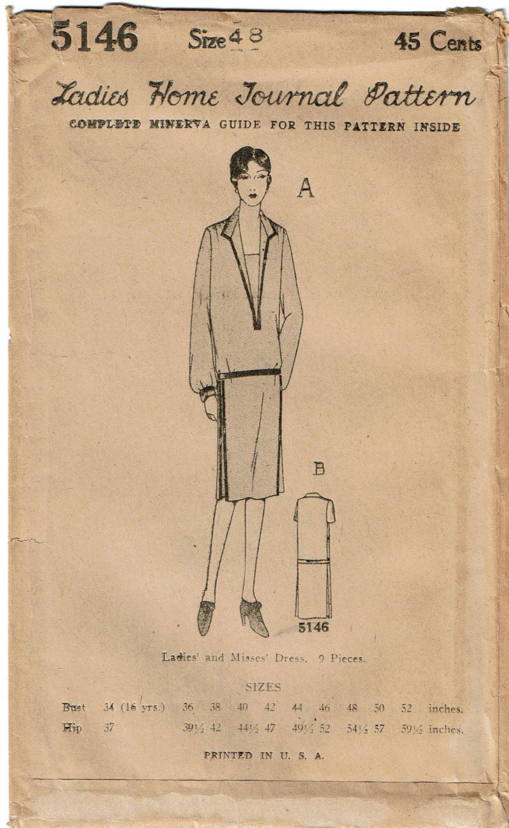 1920s VTG Ladies Home Journal Sewing Pattern 5146 FF Plus Size Flapper Dress 48B