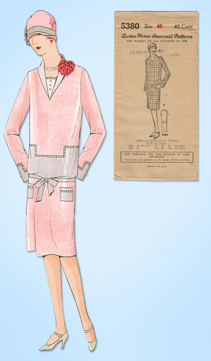 1920s VTG Ladies Home Journal Sewing Pattern 5380 FF Plus Size Flapper Dress 40B