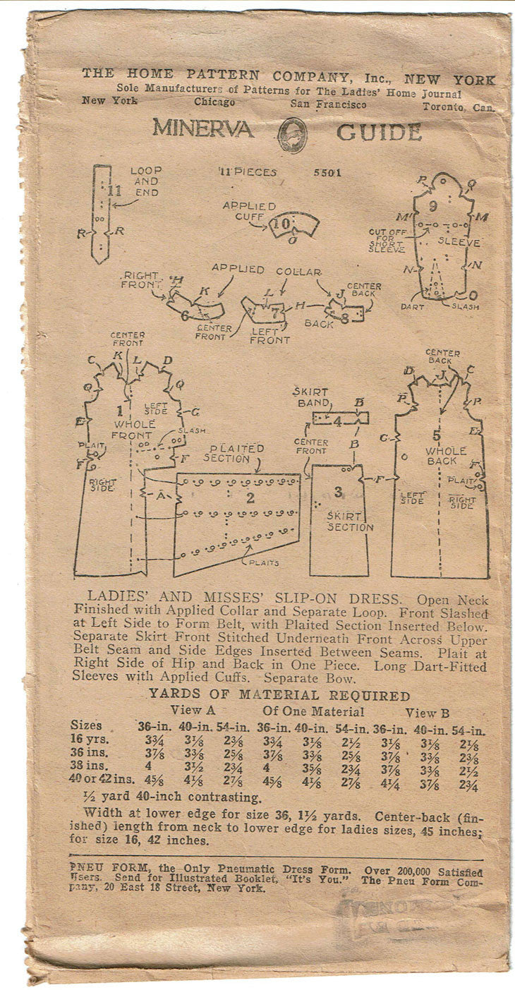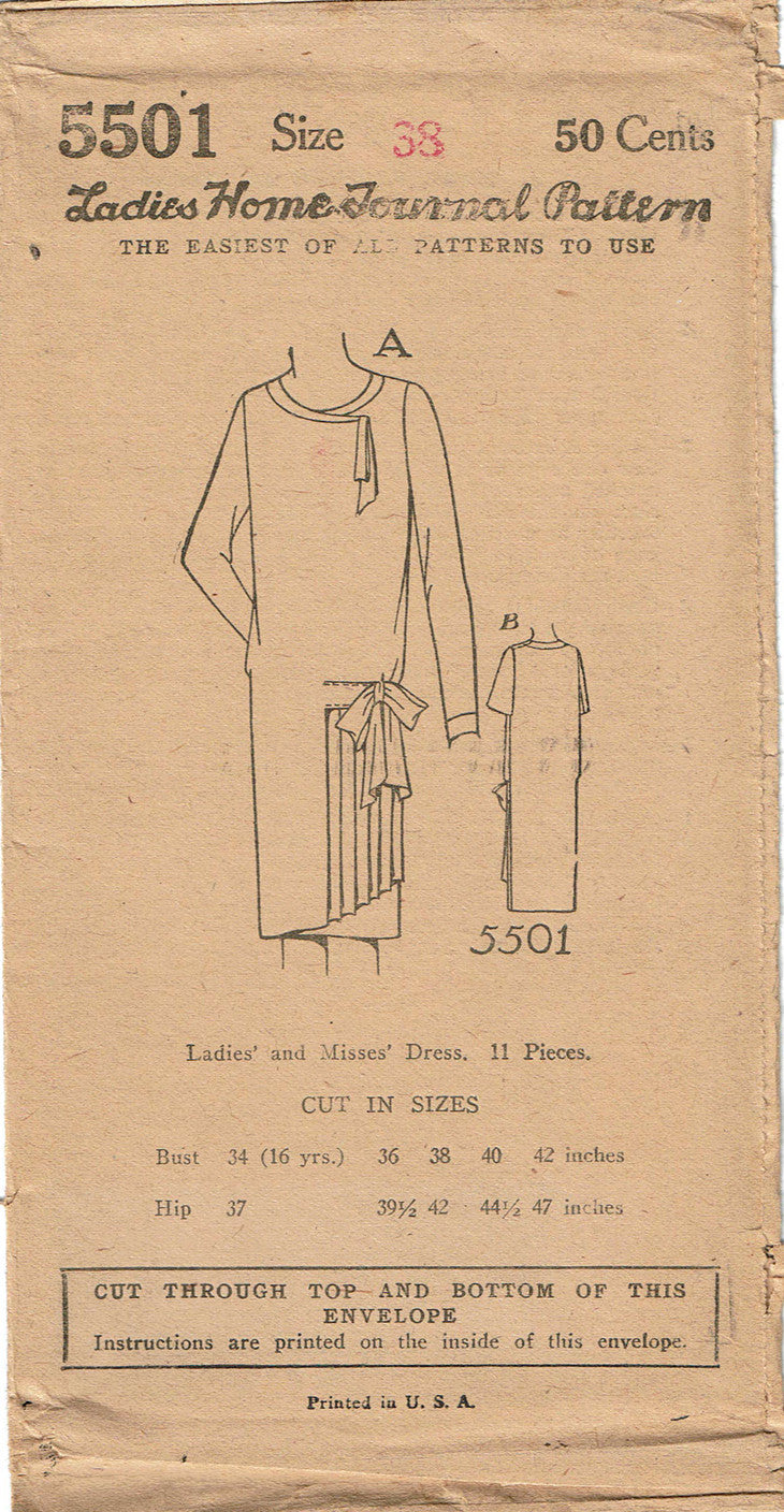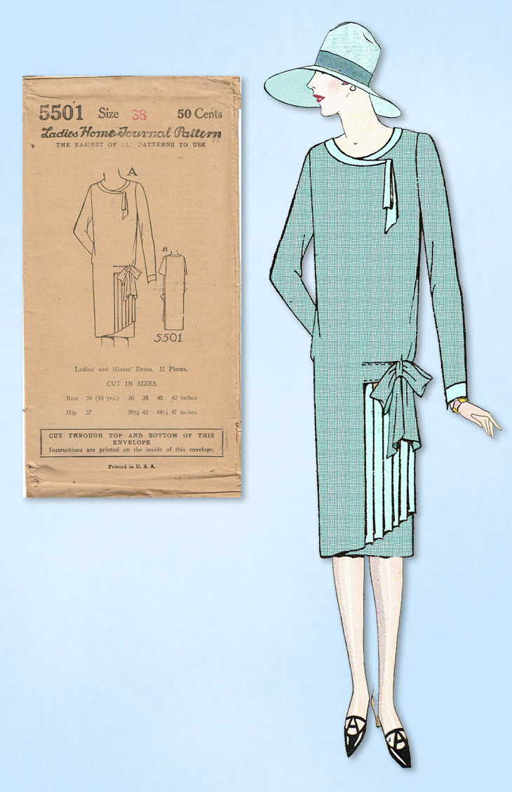 1920s VTG Ladies Home Journal Sewing Pattern 5501 Uncut Flapper Dress Size 38 B