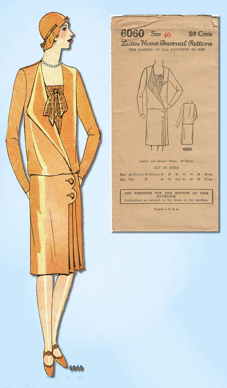 1920s VTG Ladies Home Journal Sewing Pattern 6060 FF Plus Size Flapper Dress 40B