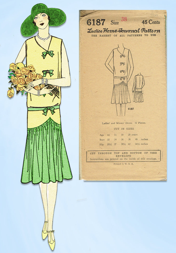 1920s VTG Ladies Home Journal Sewing Pattern 6187 FF Spring Flapper Dress Sz 38B