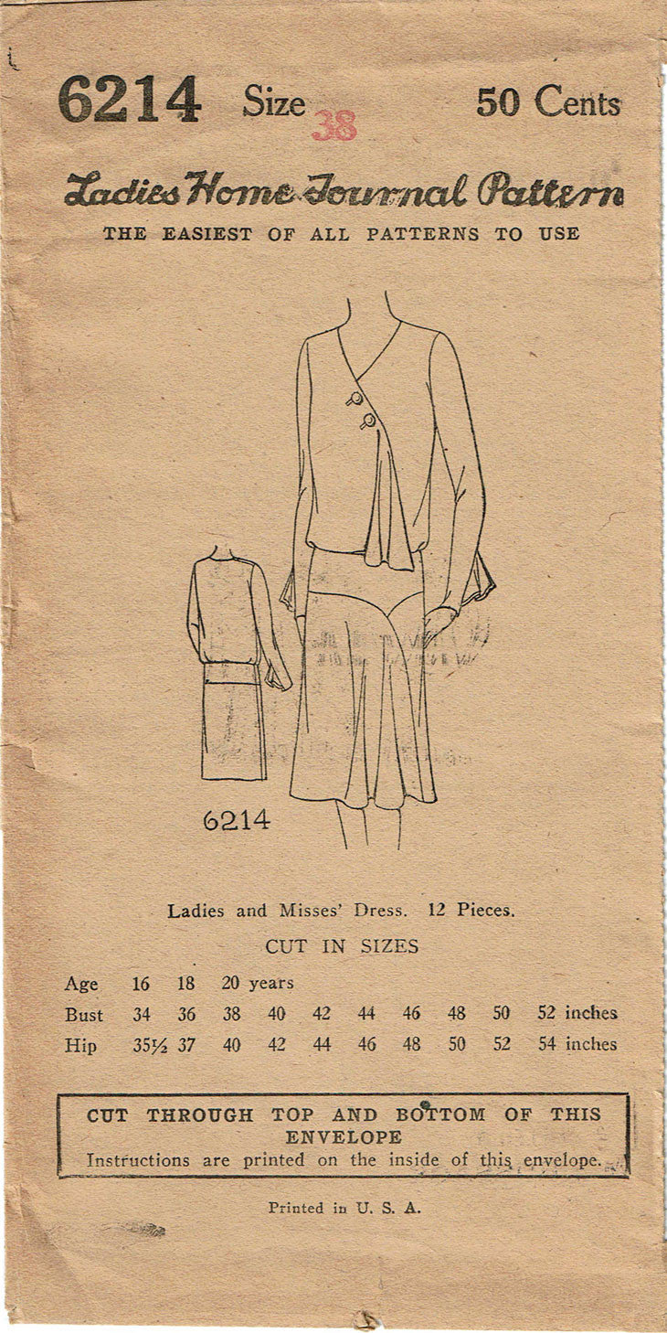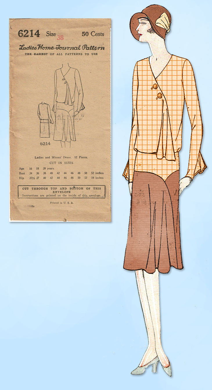 1920s VTG Ladies Home Journal Sewing Pattern 6214 Uncut Misses Flapper Dress 38B