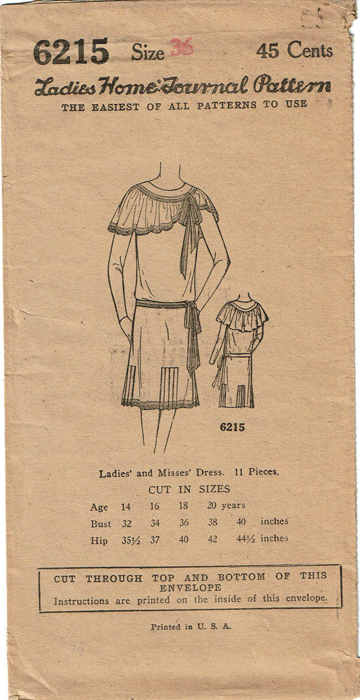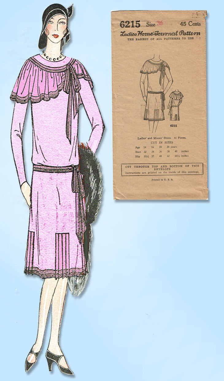 1920s VTG Ladies Home Journal Sewing Pattern 6215 Uncut Flapper Party Dress 36B