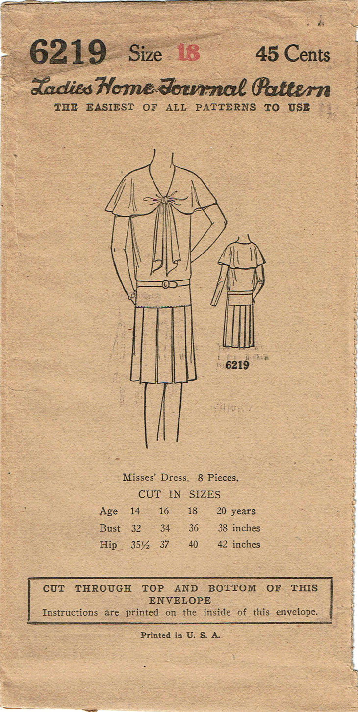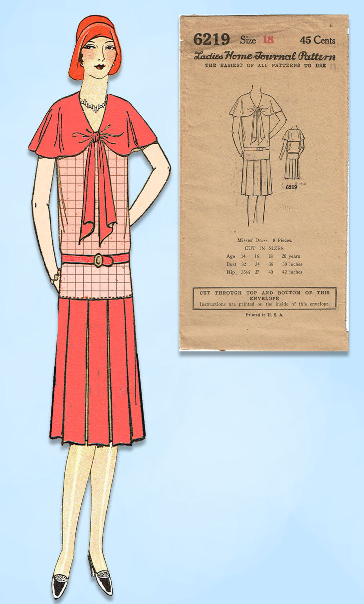 1920s VTG Ladies Home Journal Sewing Pattern 6219 FF Misses Flapper Dress Sz 36B