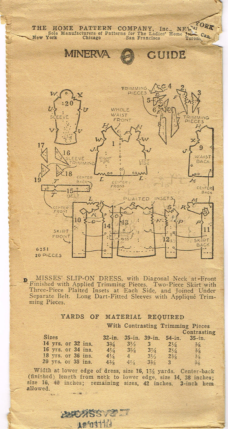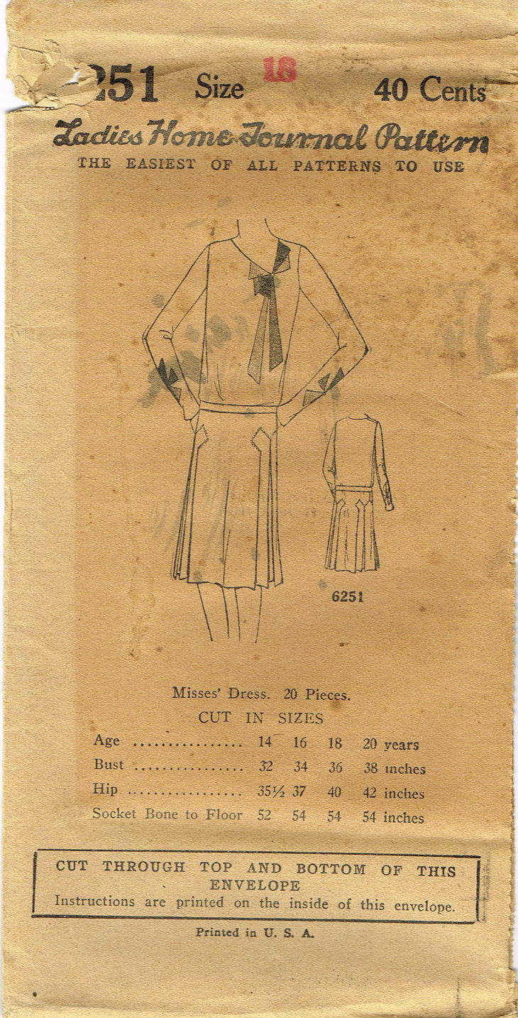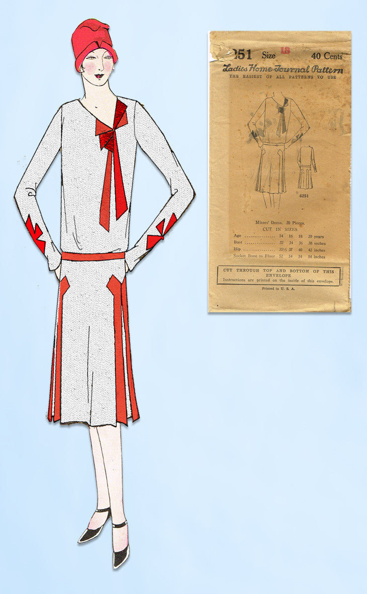 1920s VTG Ladies Home Journal Sewing Pattern 6251 FF Flapper Cocktail Dress 36B