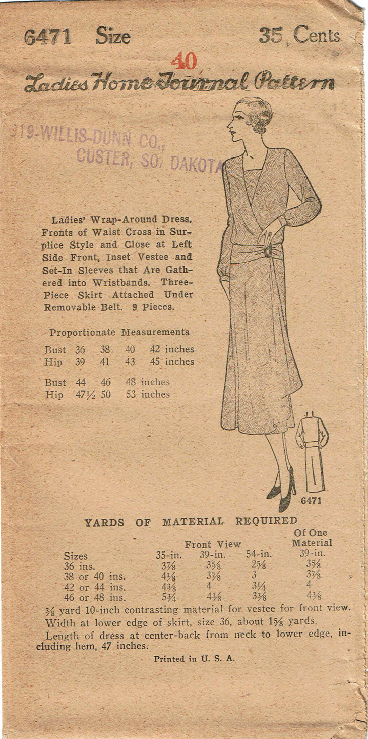 1930s Ladies Home Journal Sewing Pattern 6471 FF Plus Size Afternoon Dress 40 B