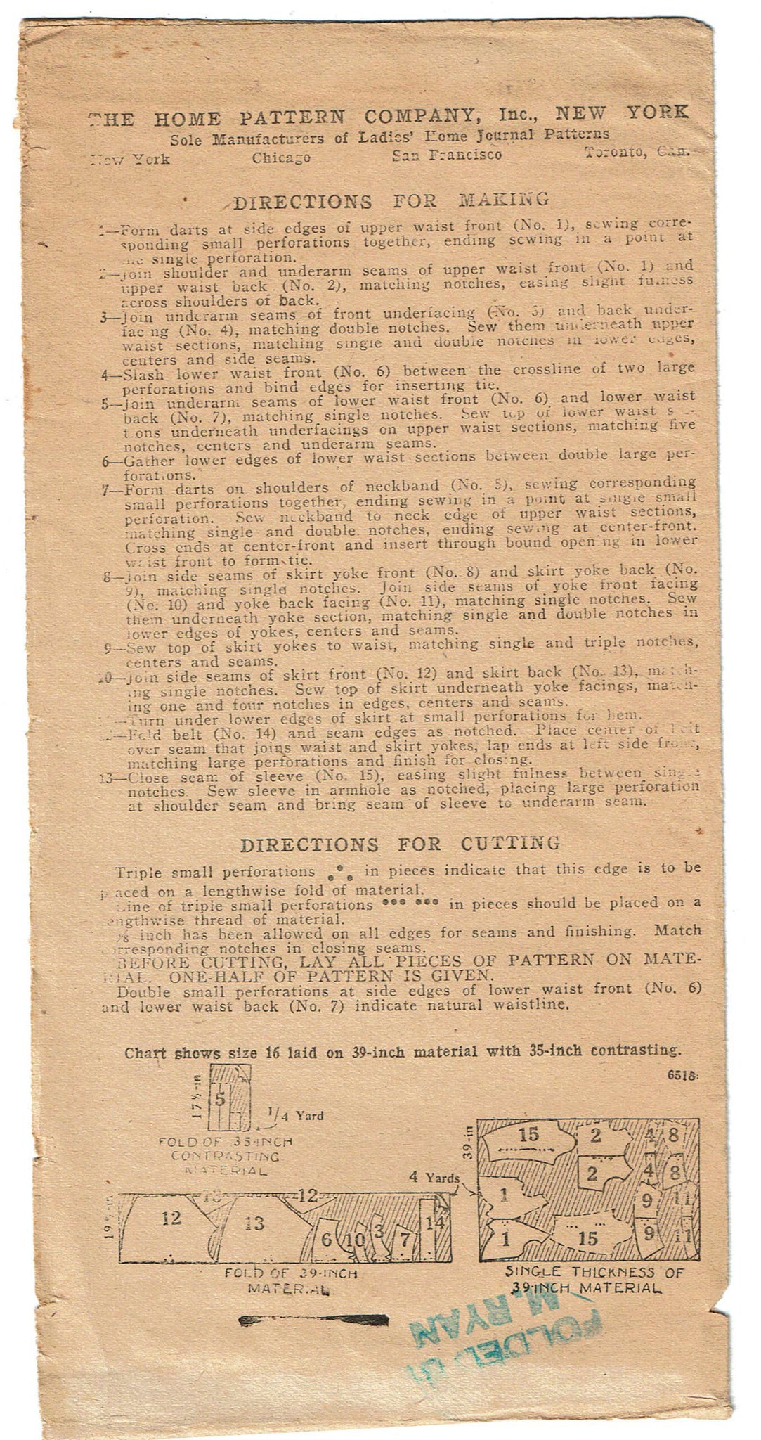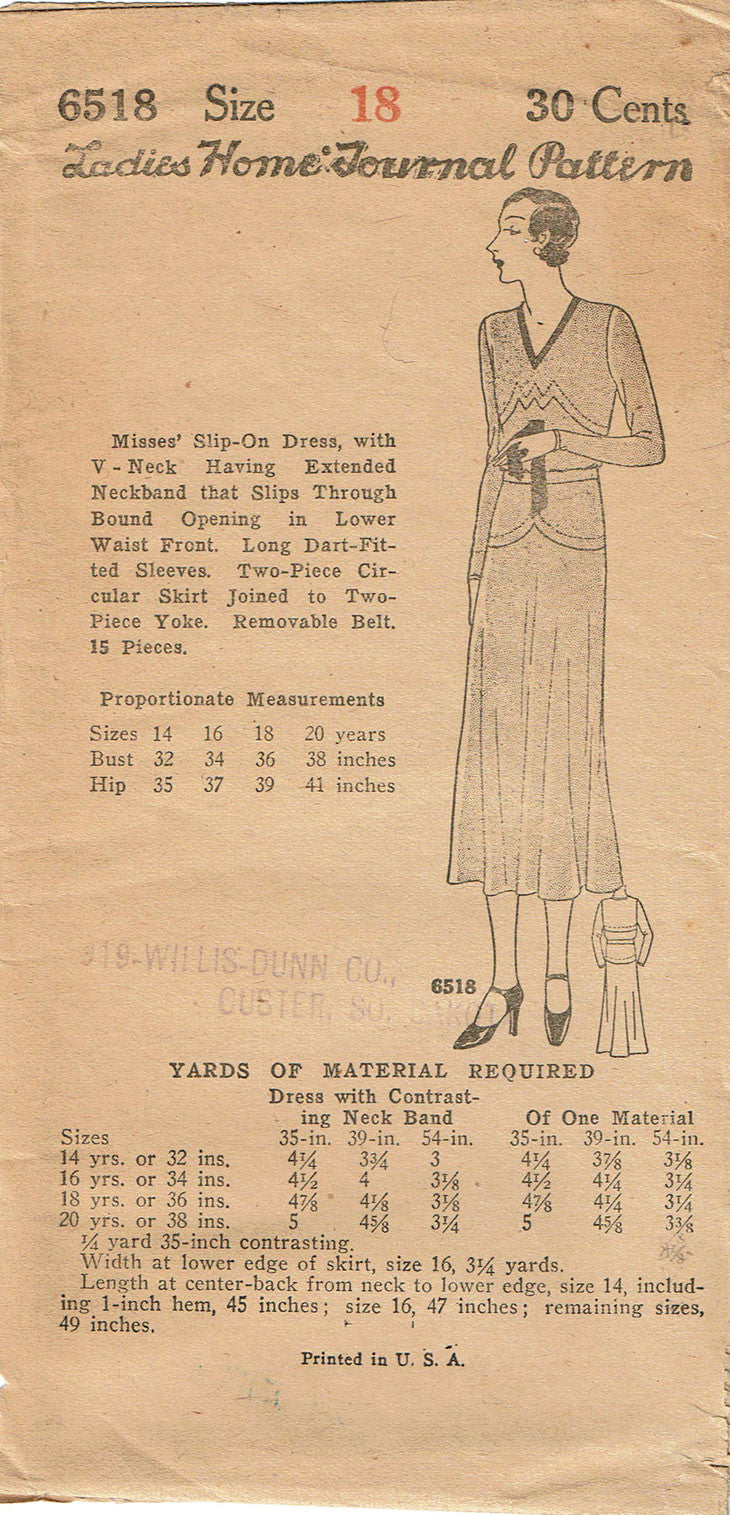 Ladies Home Journal Sewing Pattern 6518