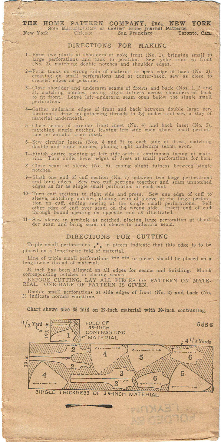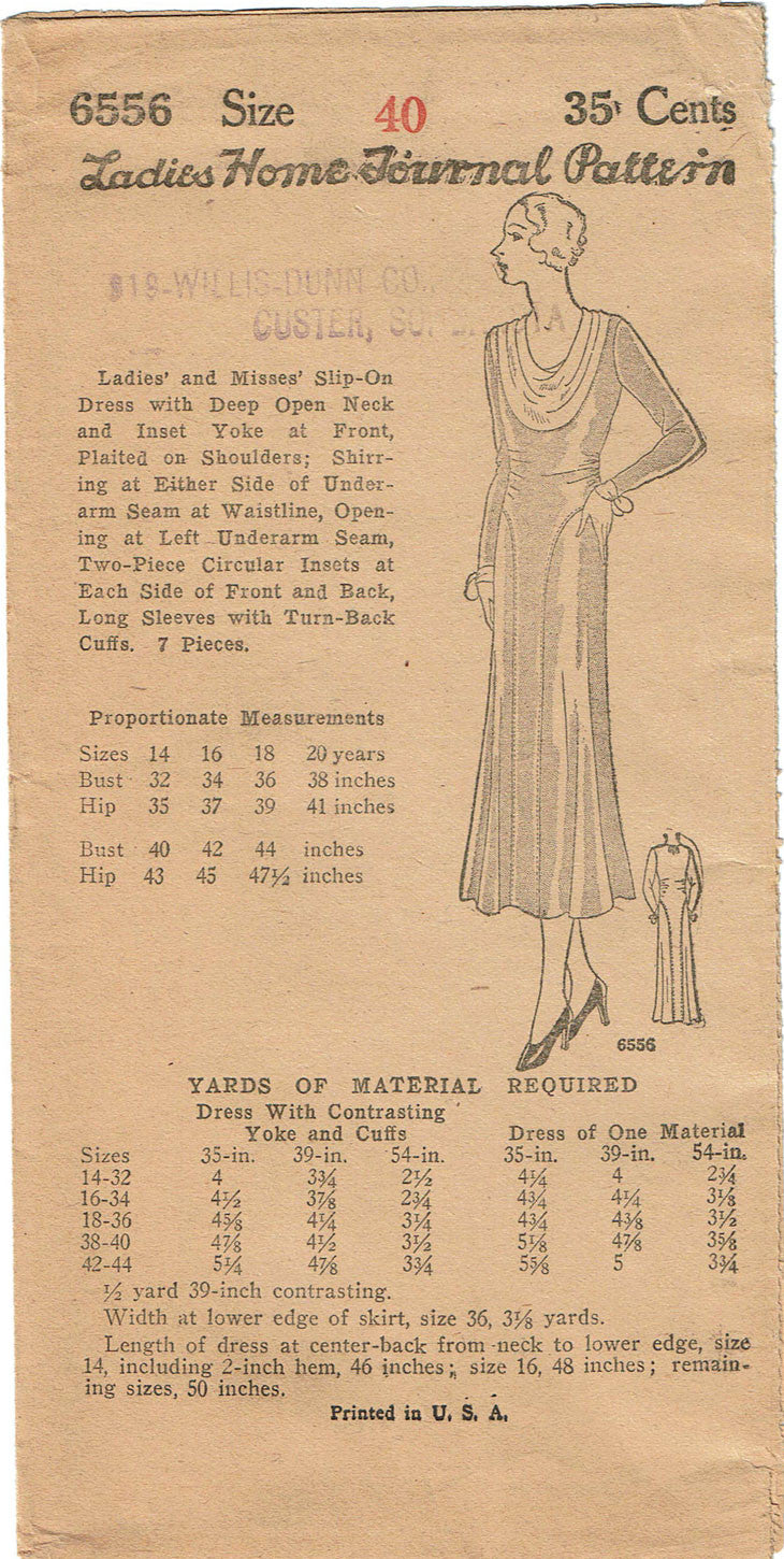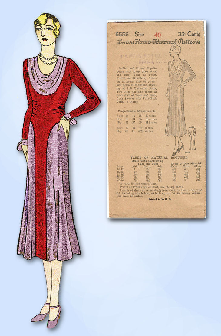 1930s Ladies Home Journal Sewing Pattern 6556 FF Plus Size Afternoon Dress 40 B