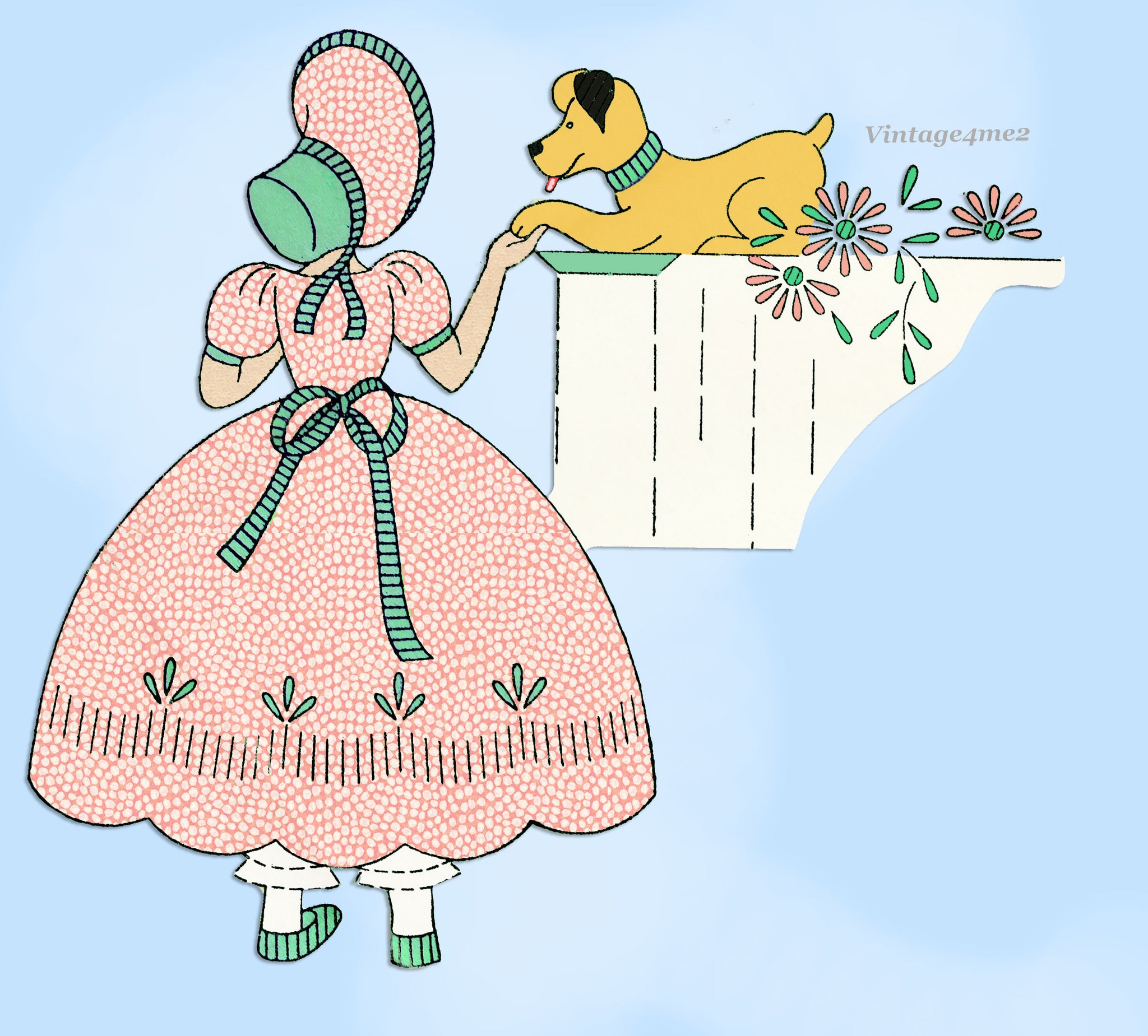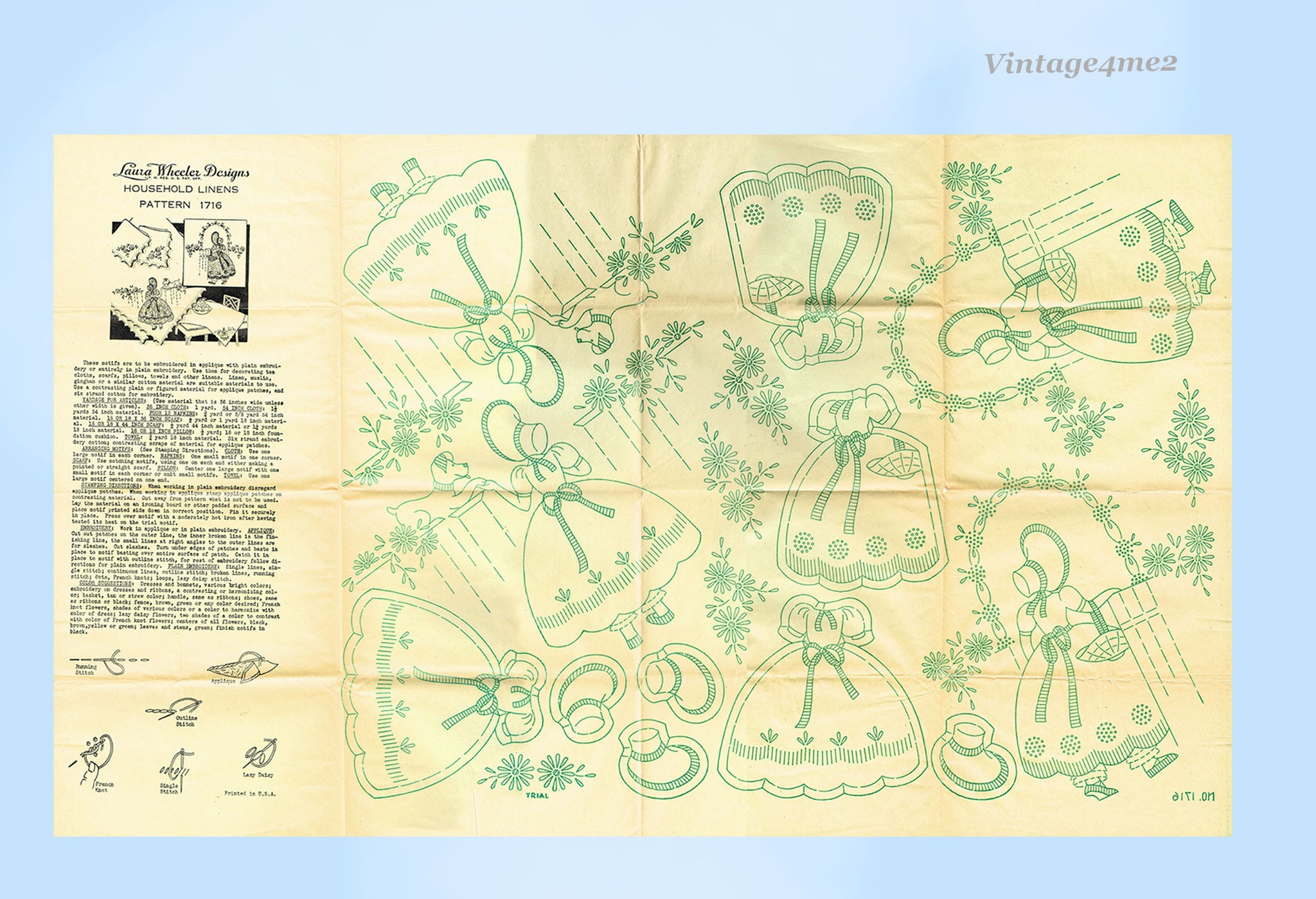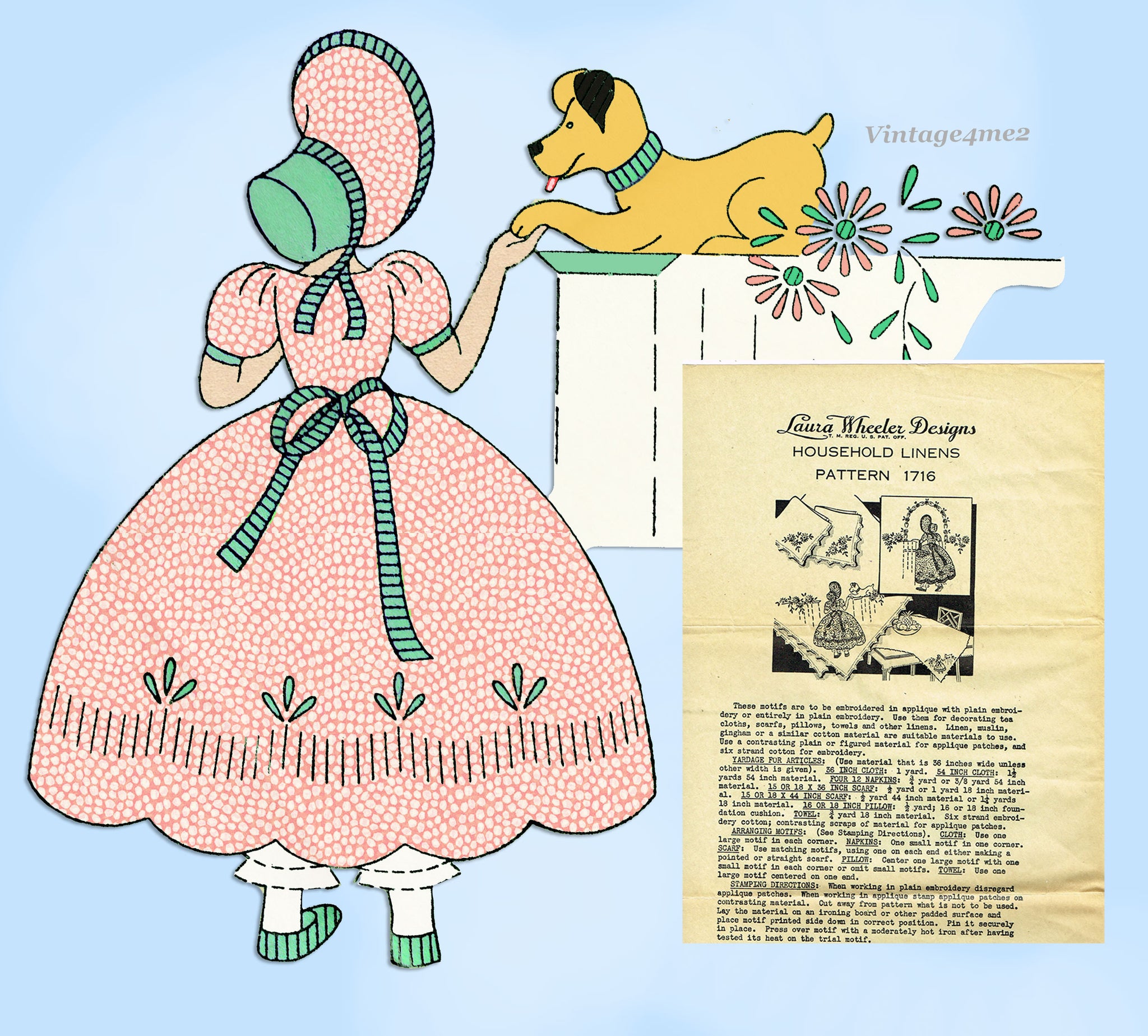 1930s Laura Wheeler Embroidery Transfer 1716 Uncut Appliqué Bonnet Gals ORIGINAL
