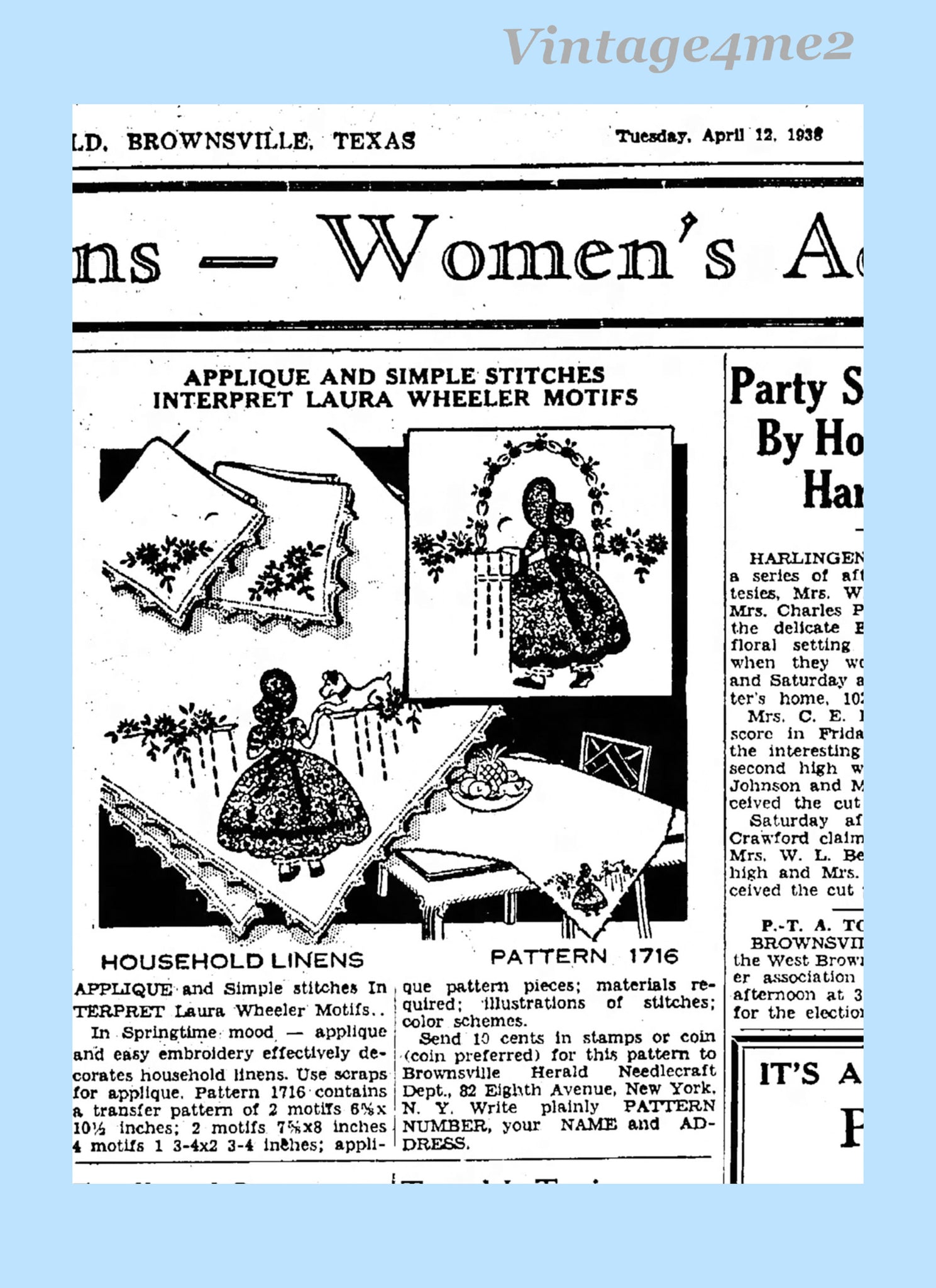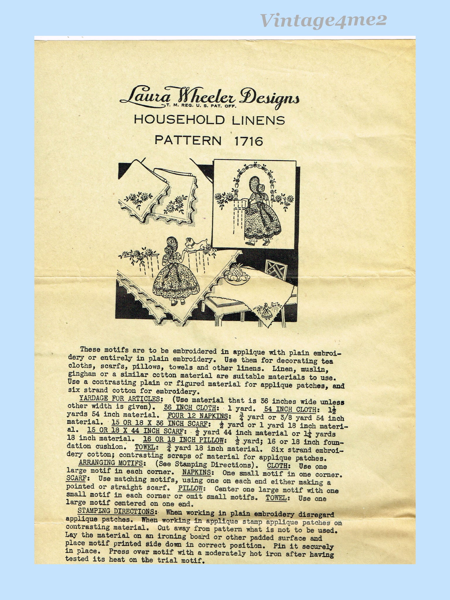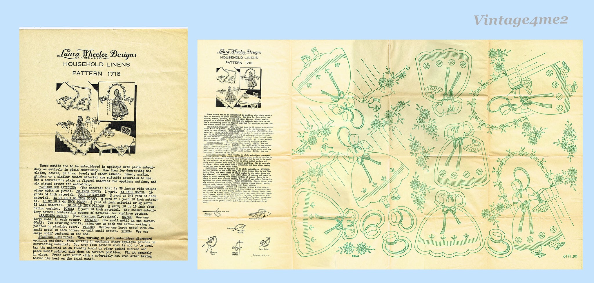 1930s Laura Wheeler Embroidery Transfer 1716 Uncut Appliqué Bonnet Gals ORIGINAL