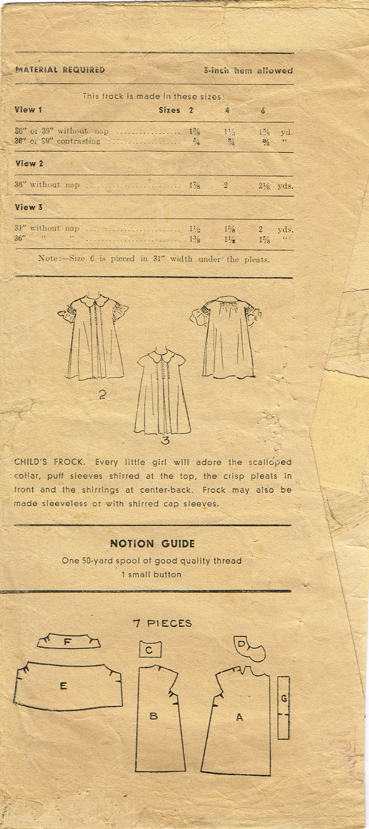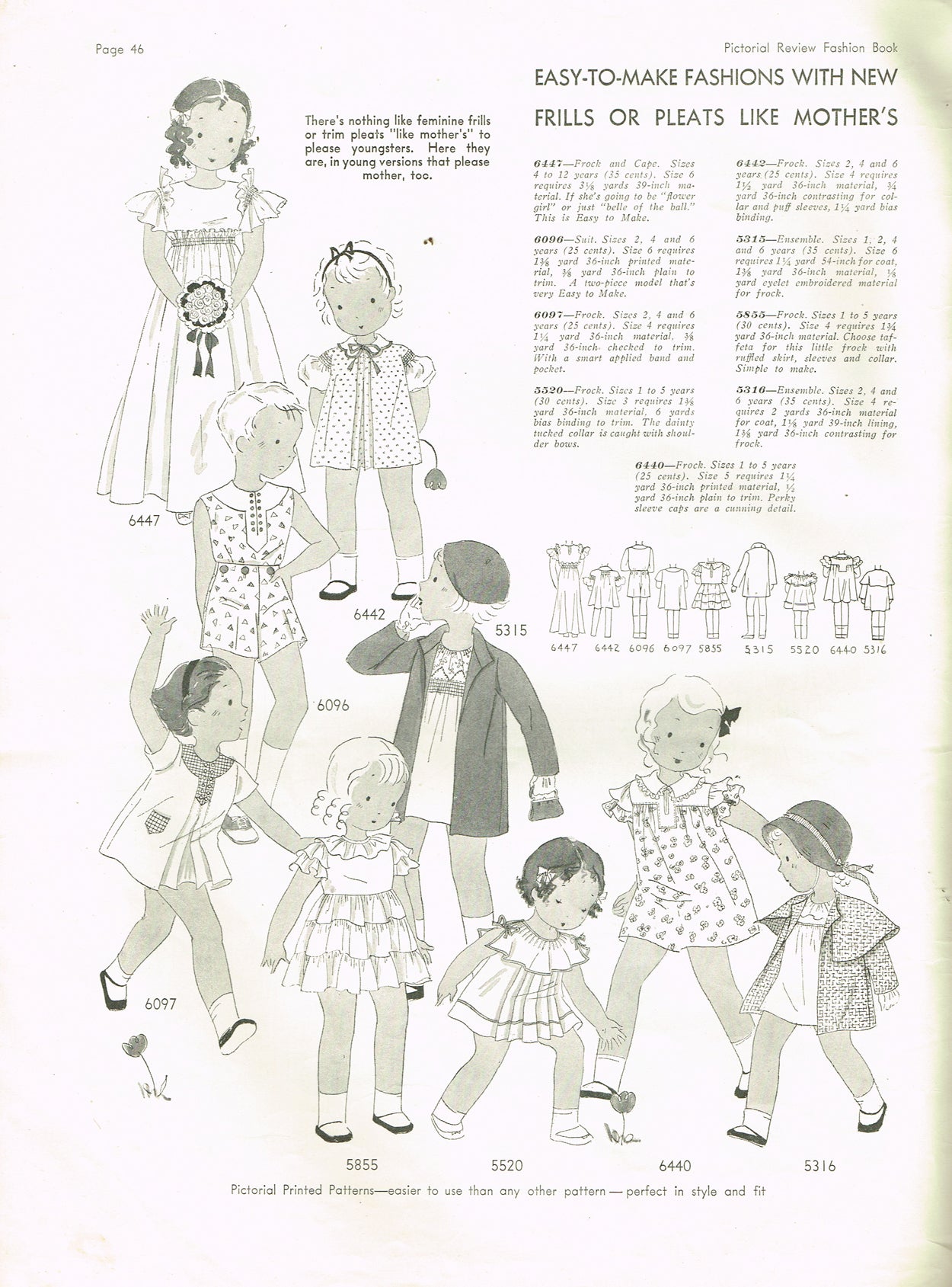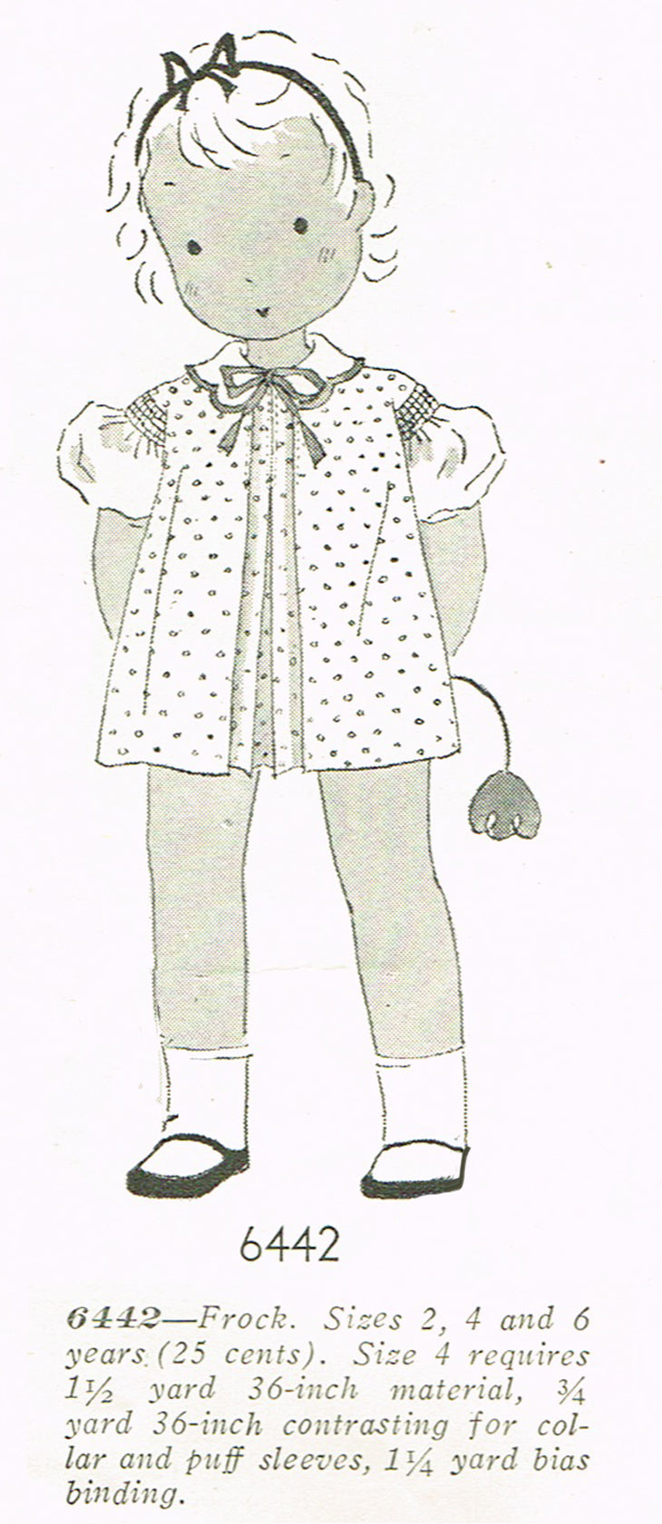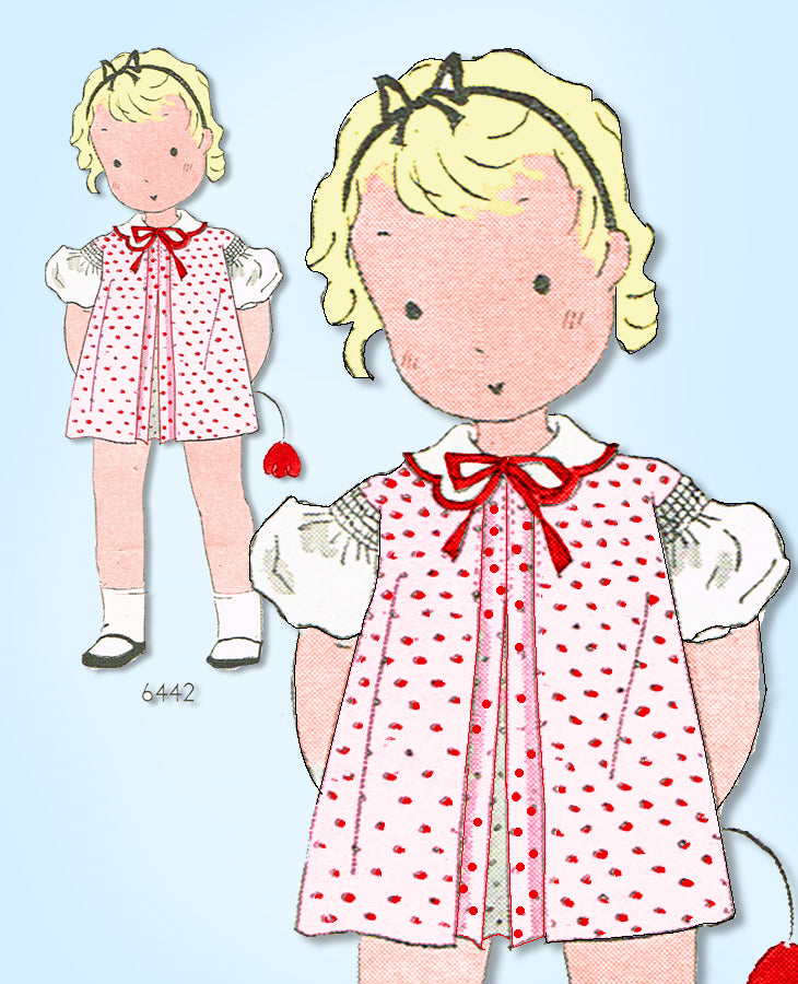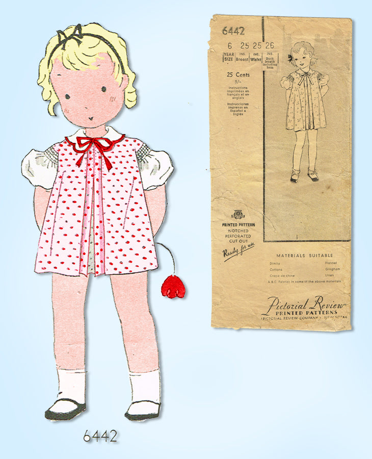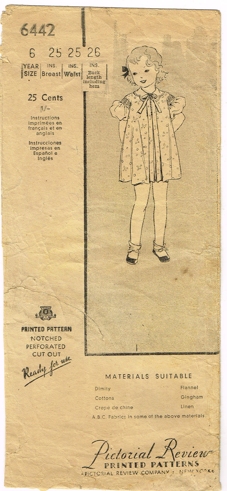 1930s Original VTG Pictorial Review Pattern 6442 Toddler Girls Shirred Dress Sz6