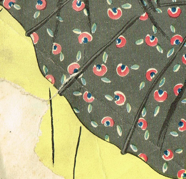 It is 48 pages long counting the beautiful covers. Most of the pages are done in two color printing. It measures just a bit over 8 1/2 x 11 inches. The condition is nice but the spine is worn, there is a bite out of the back cover and some pencil marks on the back page.