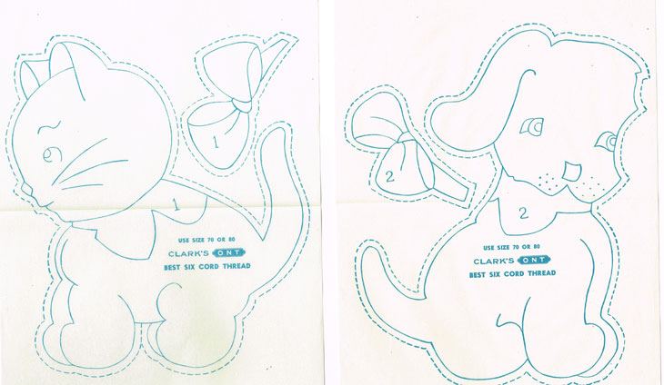 This is a charmer of a vintage toy pattern for cuddle toys. Two each are included for Calico Cat and Gingham Dog. Cute and Easy, these rare designs are hard to come by.