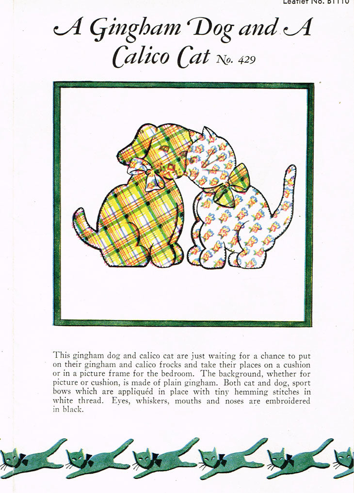1930s Spool Cotton 429 Uncut Cuddle Toys Cat & Dog Embroidery Transfer Patterns