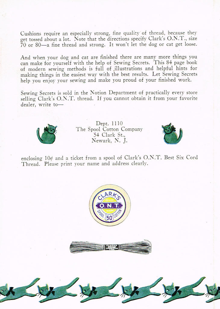 Spool Cotton Company and Clarks Thread Sewing Pattern & Transfers 429