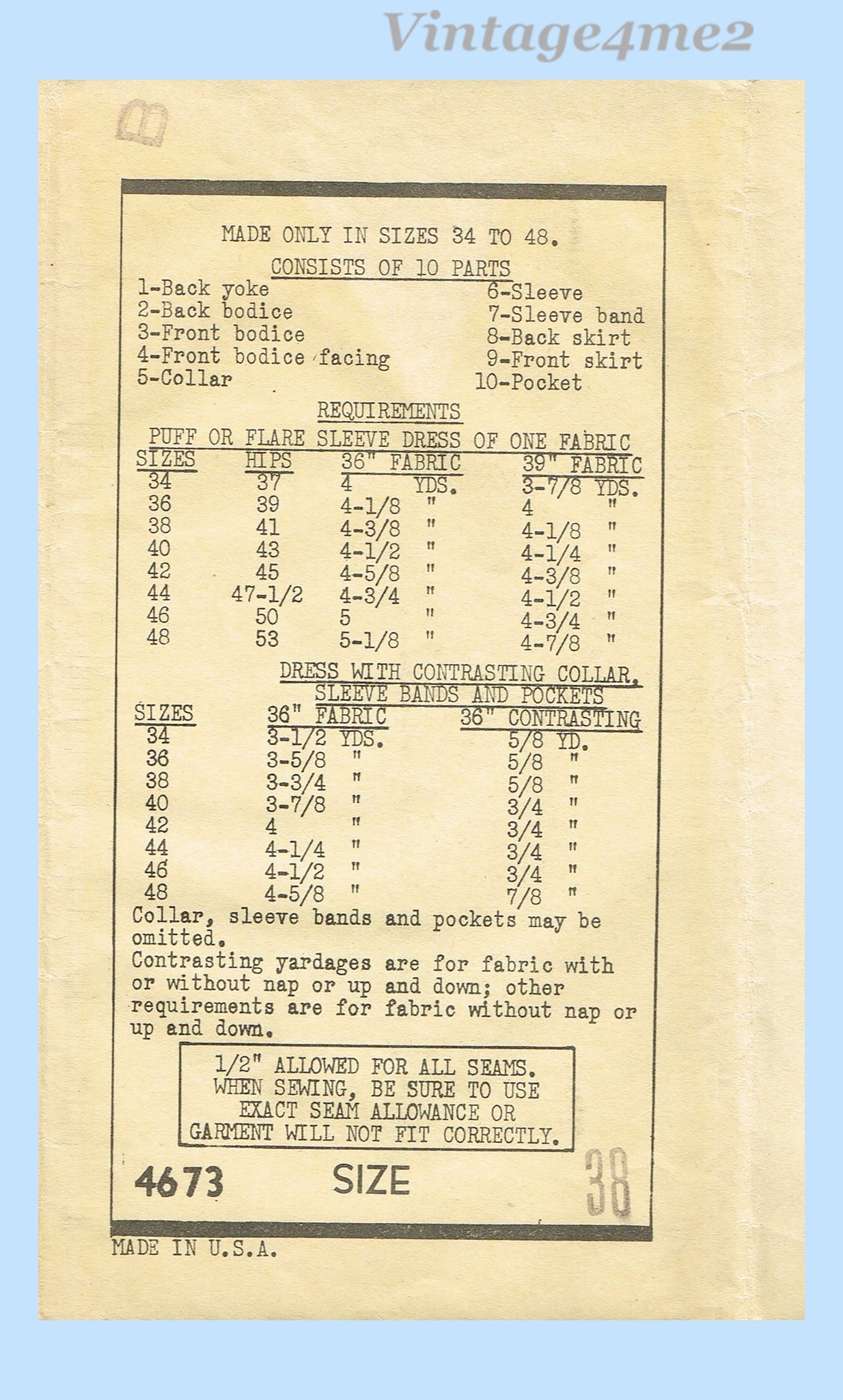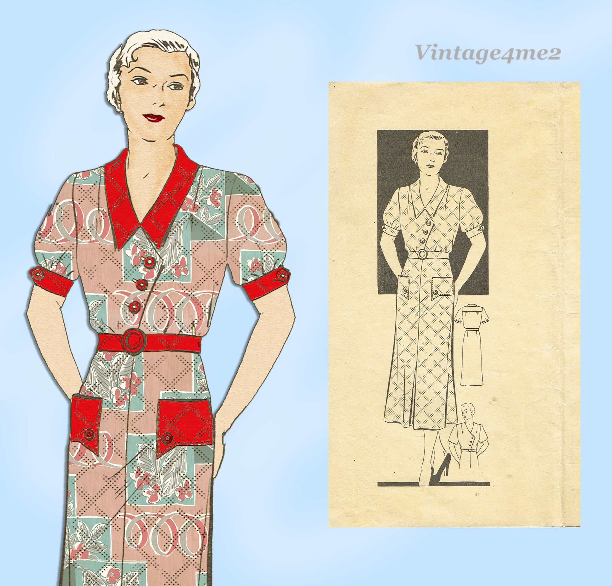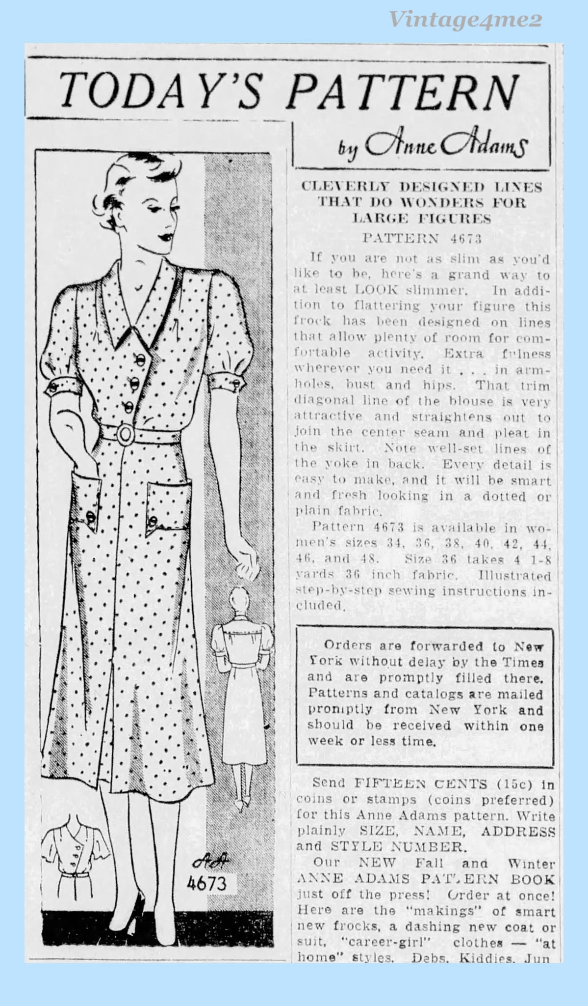 1930s Vintage Anne Adams Sewing Pattern 4673 Misses Street Dress Sz 38 Bust