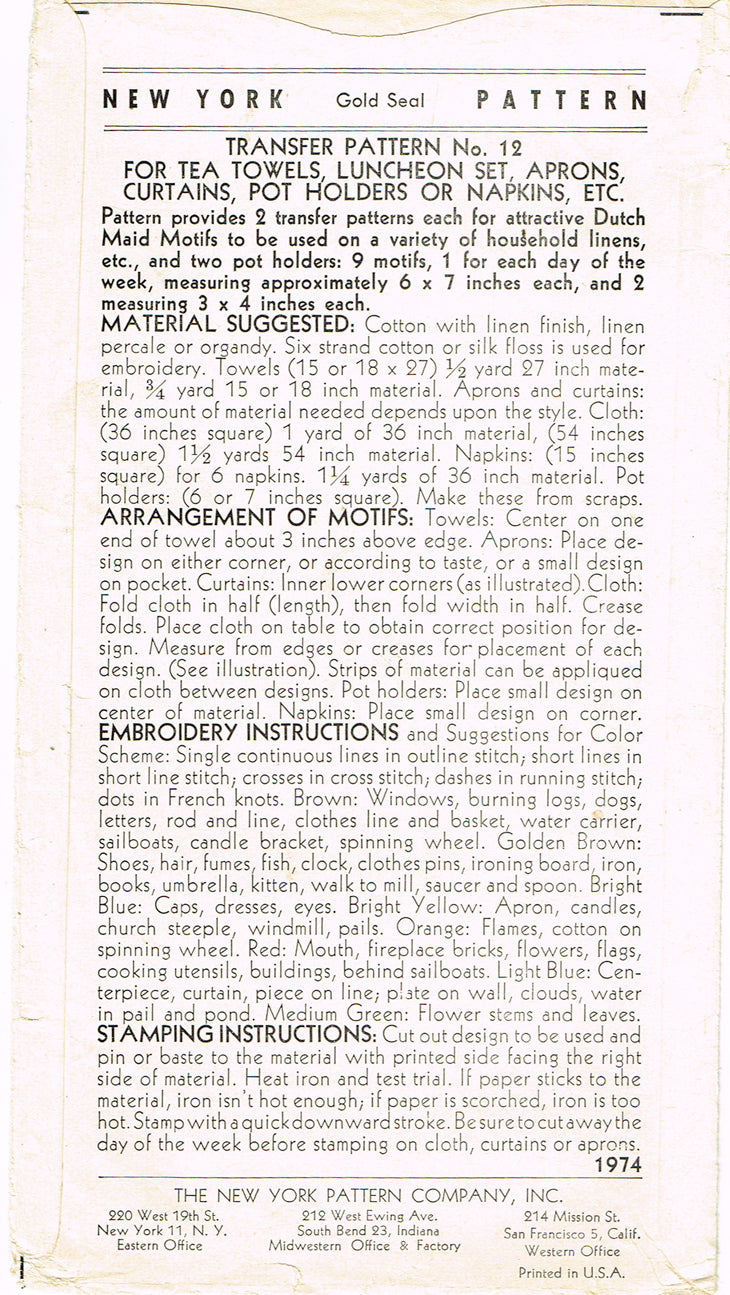 1930s Vintage New York Embroidery Transfer 12 Uncut DOW Dutch Lady Towels