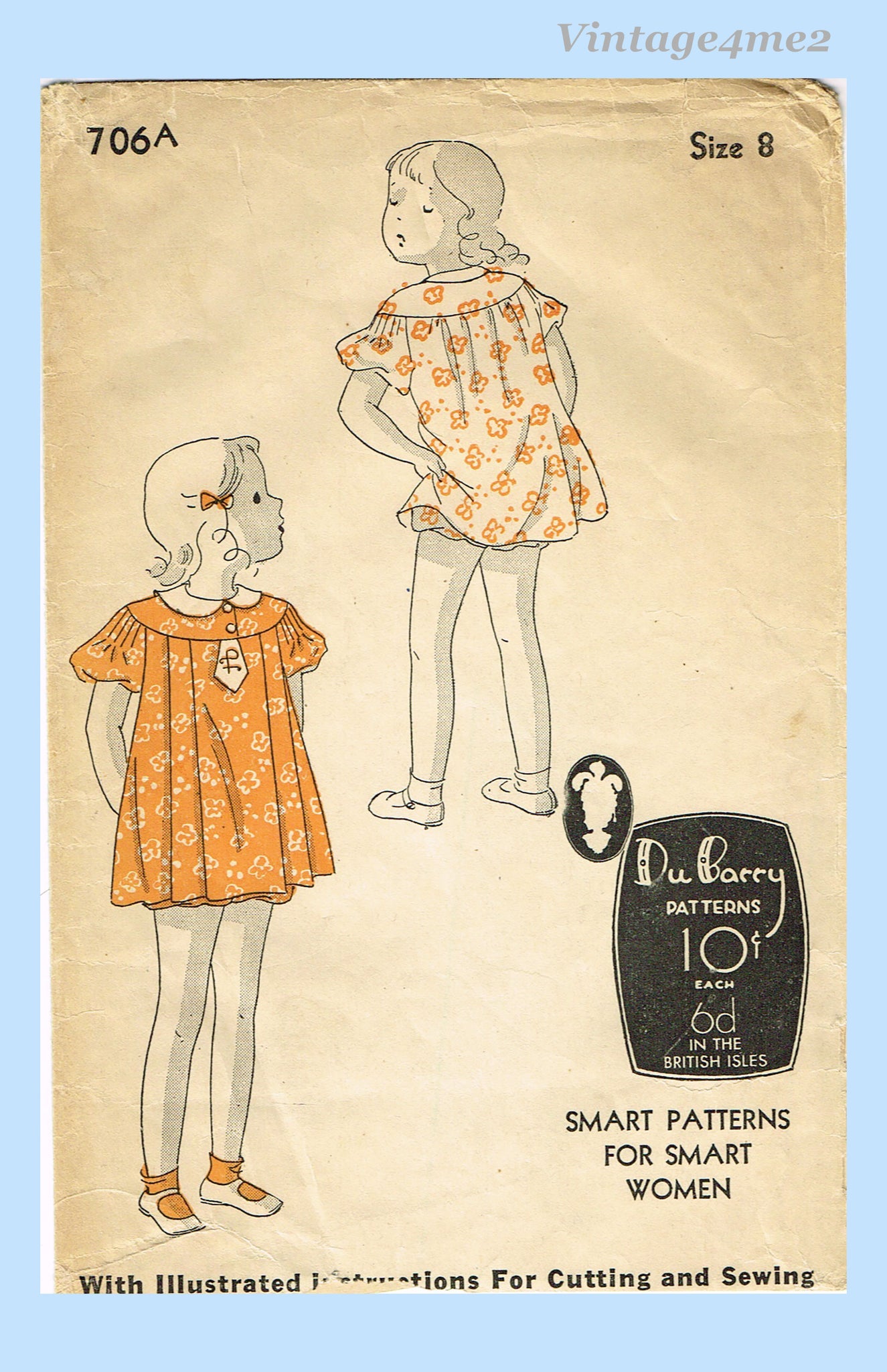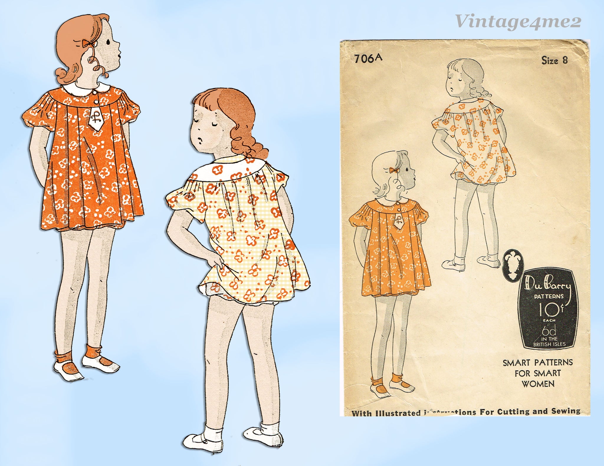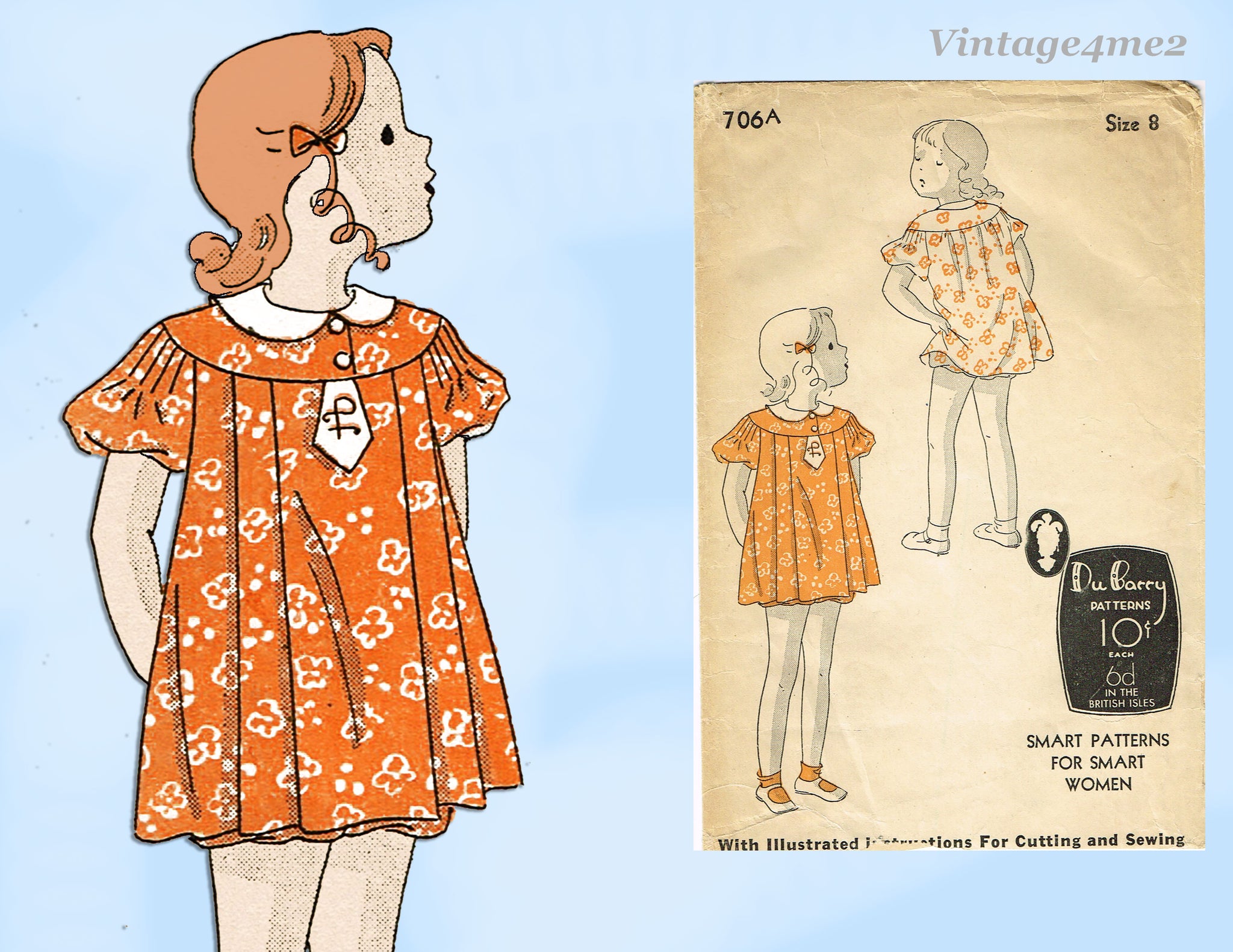 1930s Vintage Du Barry Sewing Pattern 706A Cute Little Girls Bloomer Dress Size 8