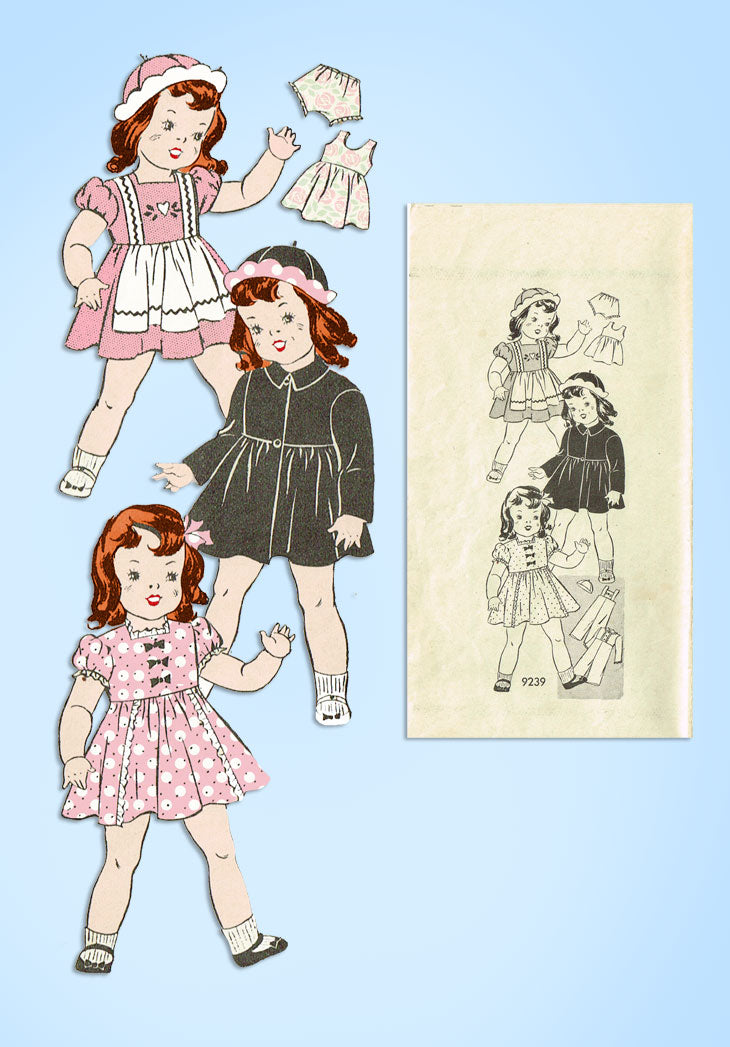 1930s Vintage Marian Martin Sewing Pattern 9239 18 Inch Little Girl Doll Clothes