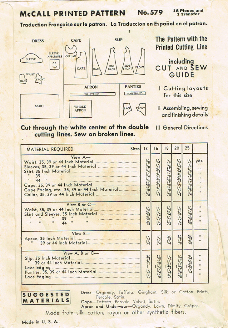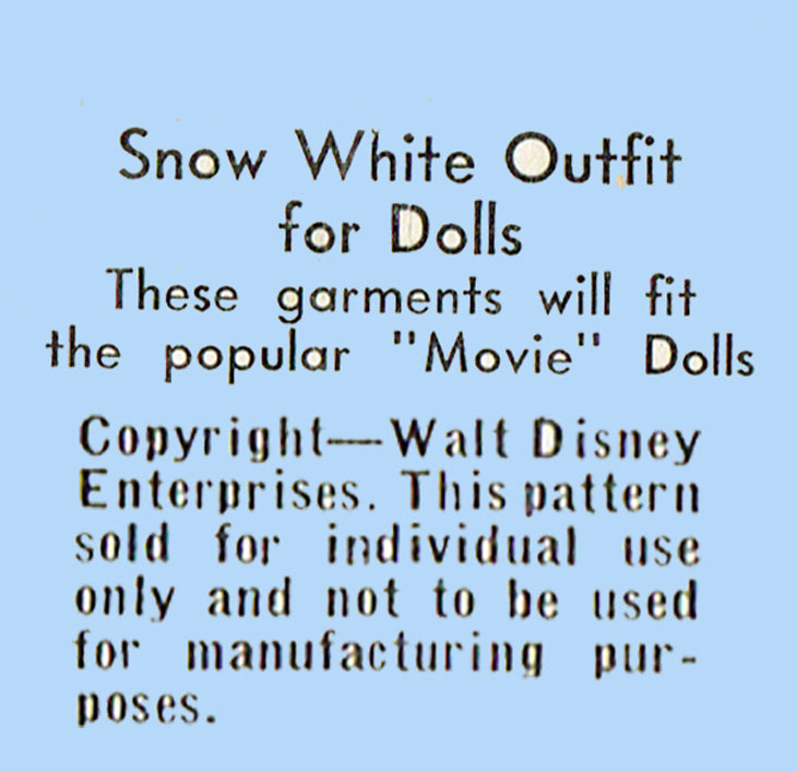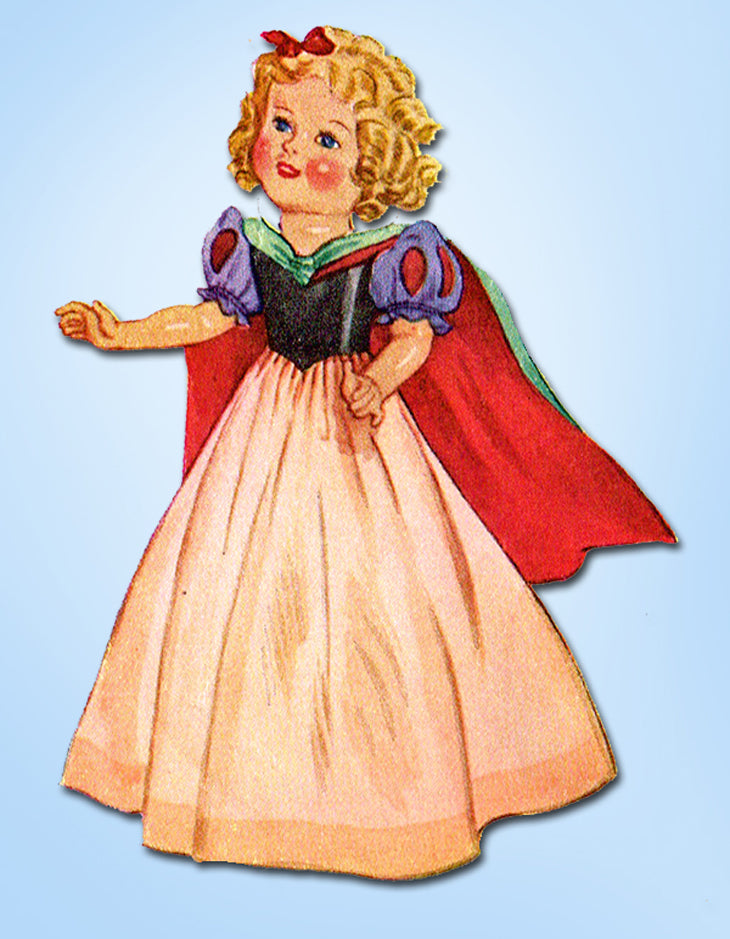1930s Vintage McCall Pattern 579 Rare Snow White 25in Movie Star Doll Clothes