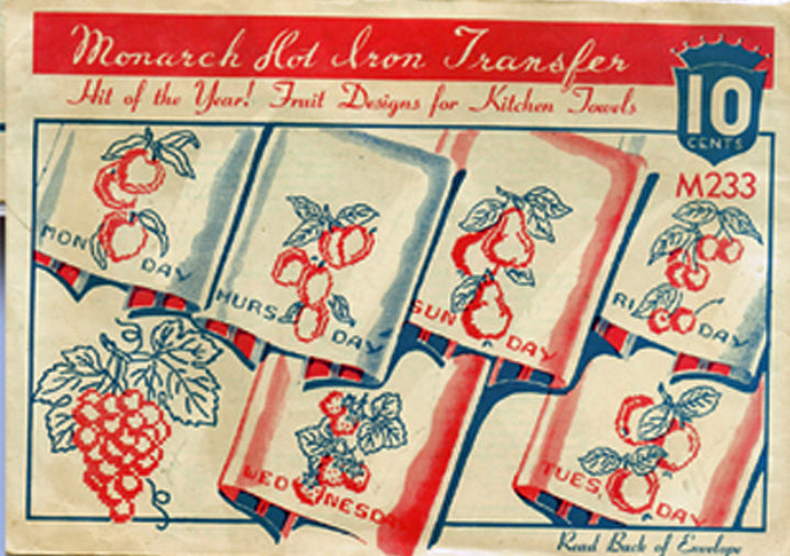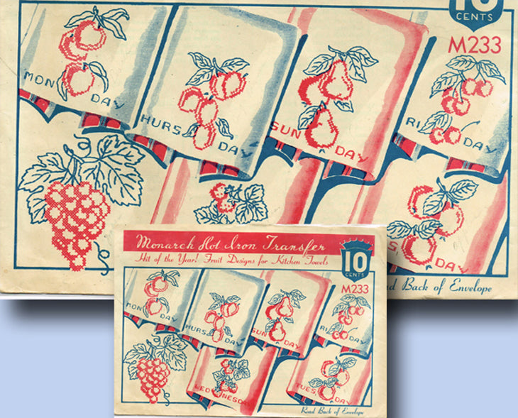 1930s Vintage Monarch Embroidery Transfer M233 Uncut X-Stitch Fruit Tea Towels