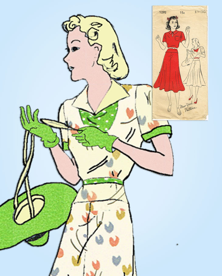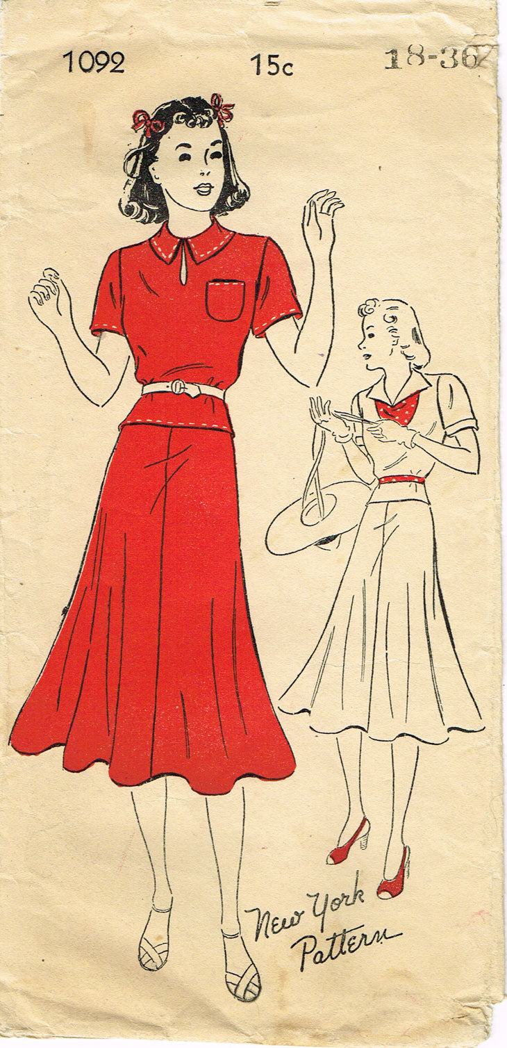 1930s Vintage New York Sewing Pattern 1092 Misses Two Piece Dress Size 36 Bust