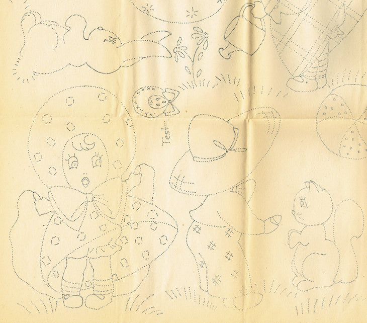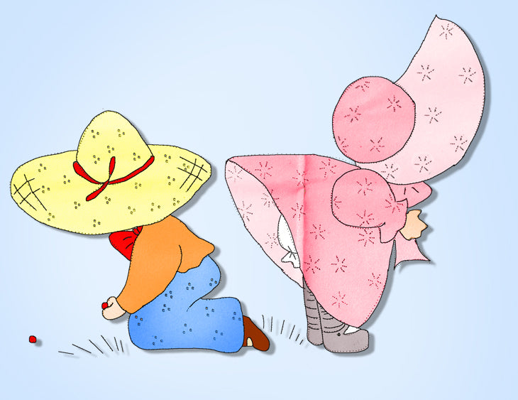 This is a sweetie of a vintage transfer, this is from Numo, which existed in the 1930s and then became Aunt Martha's in the 1940s and beyond. This transfer has 12 cute sunbonnet kids including a sunbonnet baby. There are 12 kid motifs with a few extra smaller trims. I see this on a crib quilt but it could be adapted to tea towels or kids room decor.