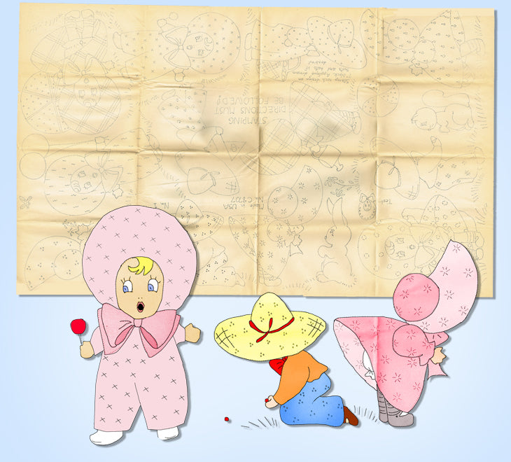 1930s Vintage Numo Embroidery Transfer C8707 Uncut Sunbonnet Babies Crib Quilt